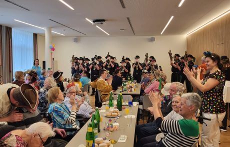 Das Faschingsfest des SeneCura Sozialzentrums Lauterach wurde am Faschingsdienstag besonders heiter gefeiert. Alle Bewohner:innen, haupt- und ehrenamtliche Mitarbeiter:innen waren herzlichst dazu eingeladen. Auf dem Programm standen ein Auftritt des Schalmeienzugs sowie die Kinder-/ Teeniegarde Lauterach.