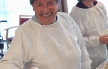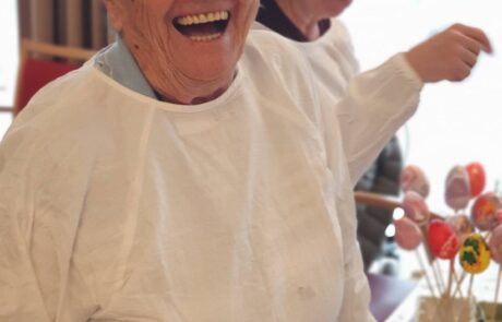 Bewohnerin Rosa Senekowitsch hat viel Spaß beim Osterbasteln.