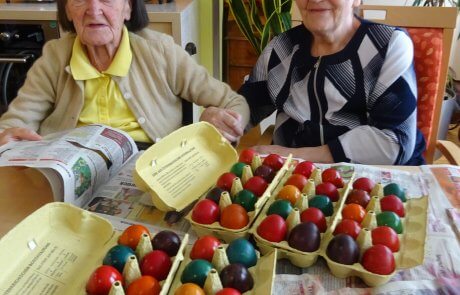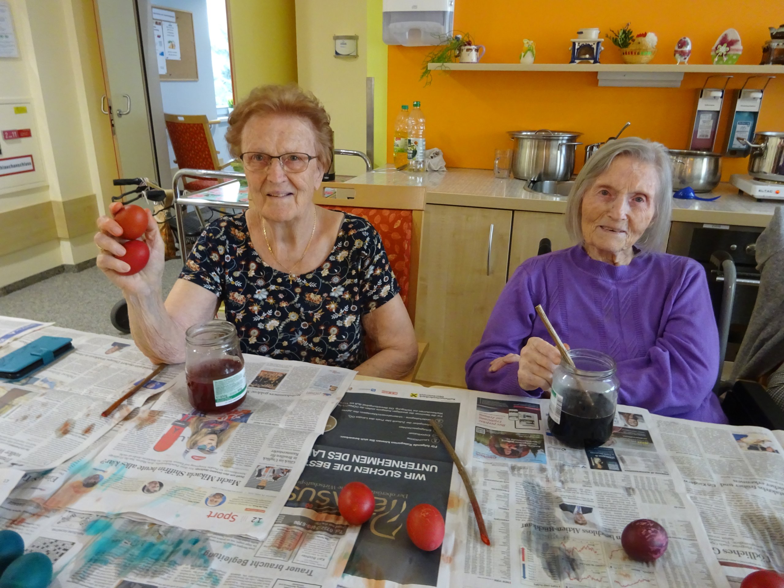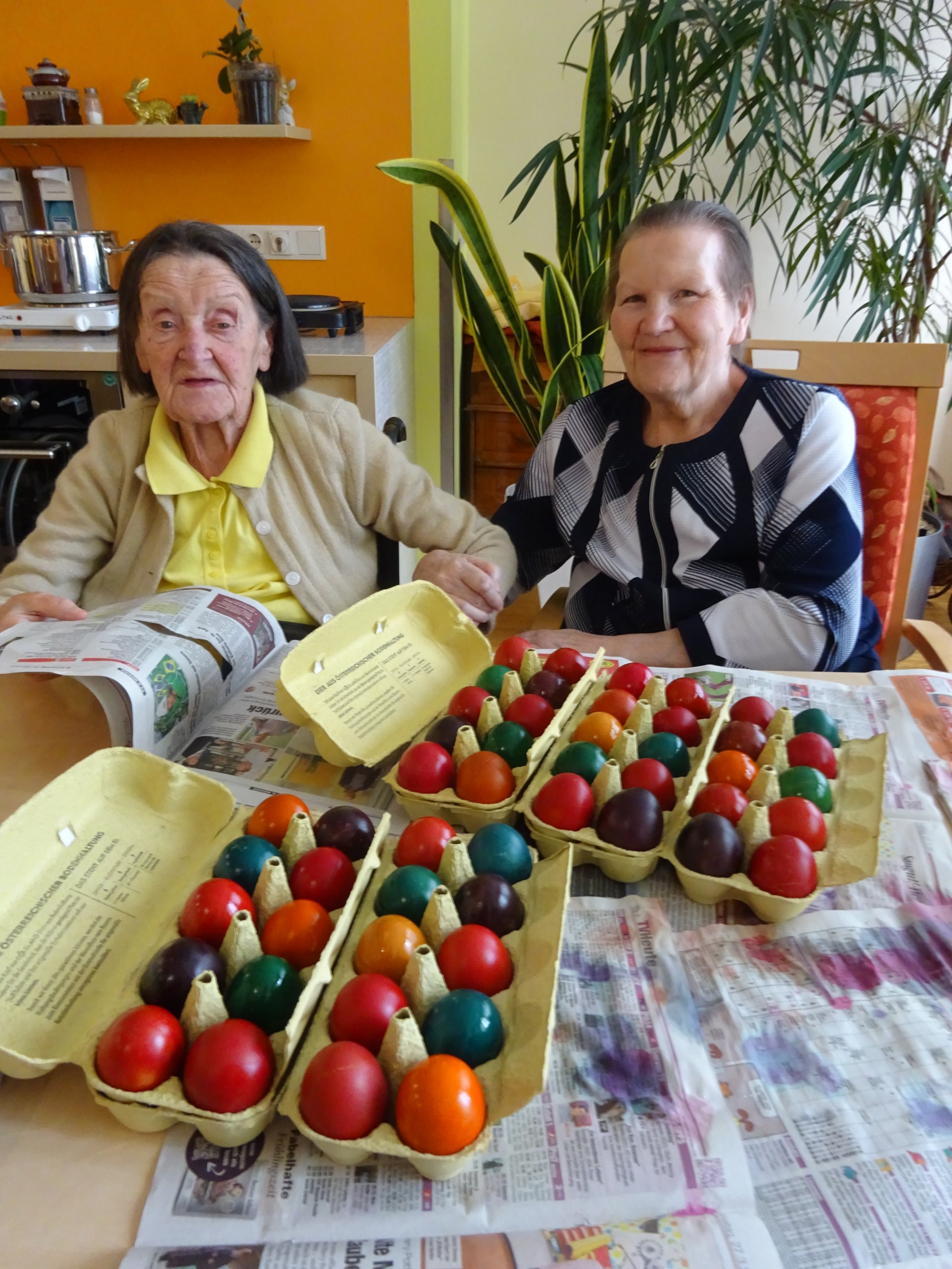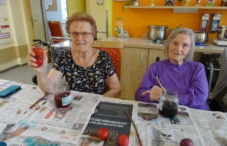Ein fixer Termin im Jahresplan ist auch das Ostereierfärben. Dabei erzählten die Bewohner:innen, wie sie früher ihre Eier mit Naturfarben gestaltet haben. Für die Seniorenbetreuung ist es besonders wichtig, dass die Bewohner:innen diese Aktivitäten selbst gestalten, denn das fördert Kreativität, Gemeinschaft und schöne Erinnerungen.