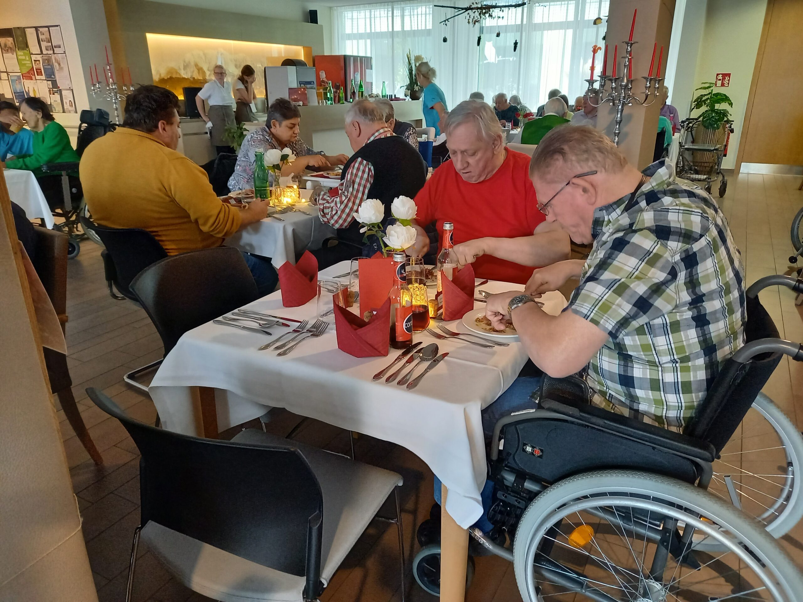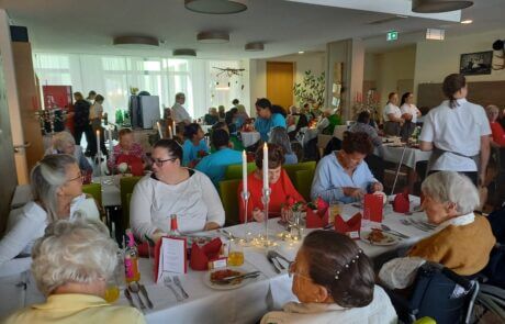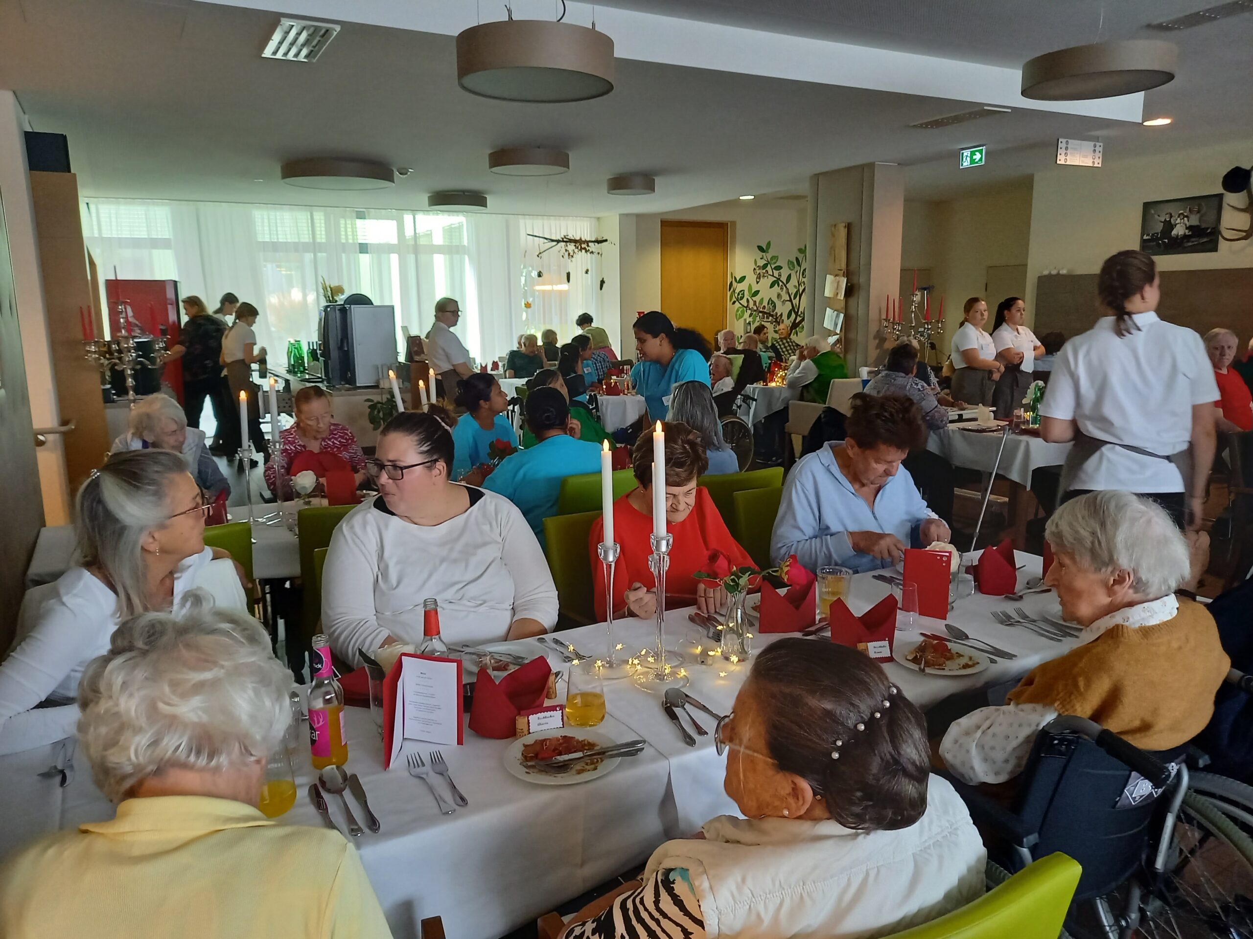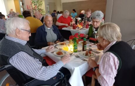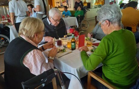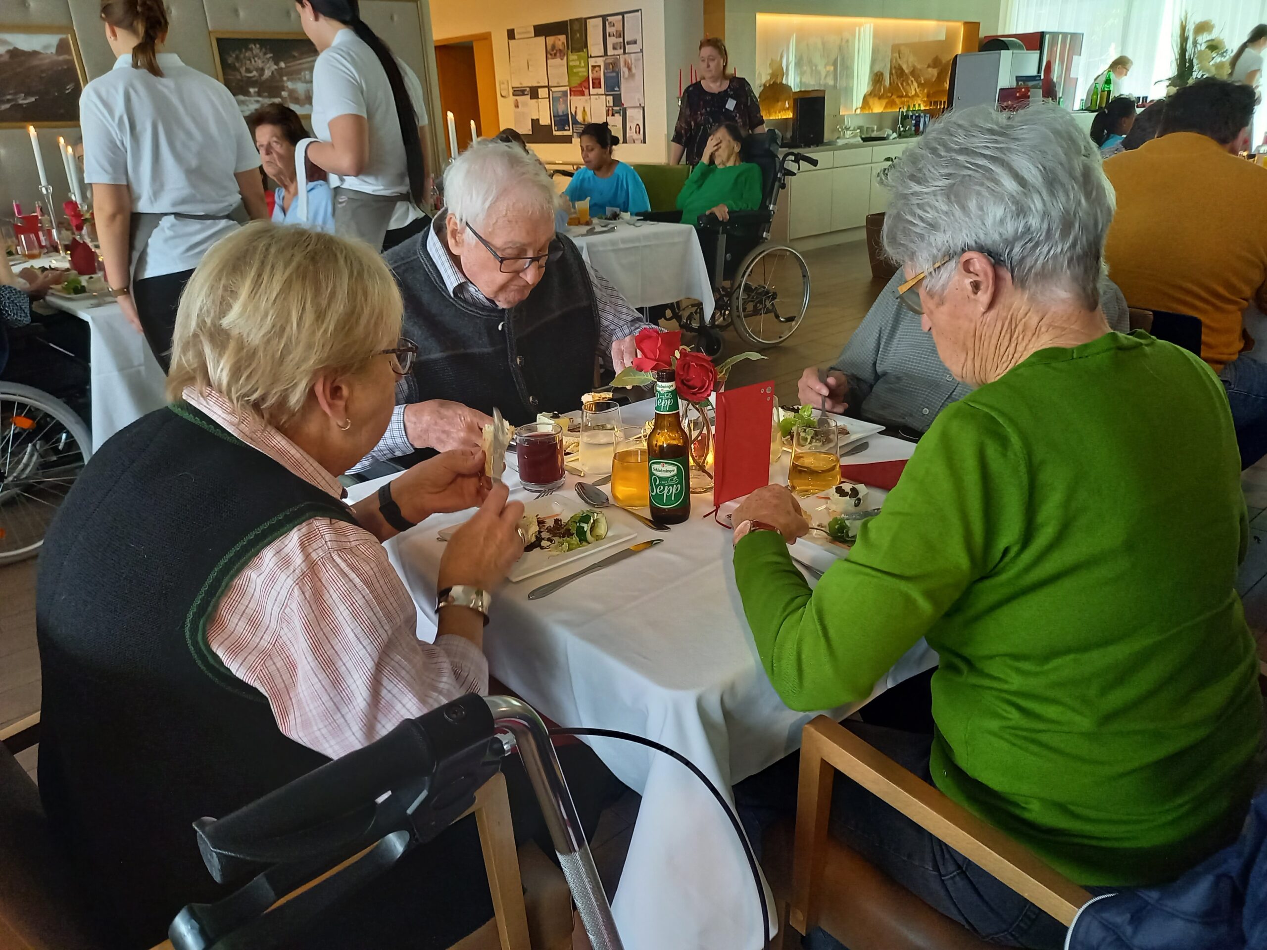 Letztens holte das SeneCura Sozialzentrum Schladming mit einem Candle Light Dinner das Haubenlokal ins Haus. Gemeinsam mit ihren Angehörigen genossen die Bewohner:innen ein mehrgängiges Menü in festlichem Ambiente. Professionell dekorierte Tische, Kerzenleuchter sowie erlesene Menükompositionen verwöhnten die Gäste und sorgten für strahlende Augen. Die Bewohner:innen schwärmten von dem besonderen Abend, der von einem hervorragenden Service der Schüler:innen der Fachschule für Ernährungswirtschaft in Gröbming begleitet wurde. Ein stimmungsvoller Abend mit kulinarischen Genüssen, der für schöne Momente sorgte.