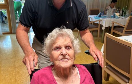 Die Bewohnerin freut sich auf das Candle Light Dinner.