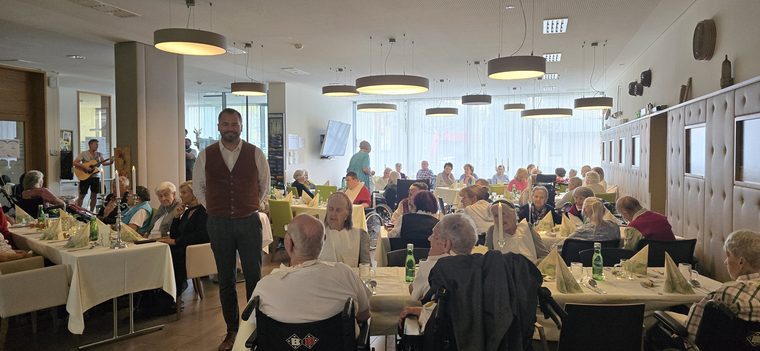 Letzte Woche holte das SeneCura Sozialzentrum Schladming mit einem „Candlelight-Dinner“ das Haubenlokal ins Haus. Gemeinsam mit ihren Angehörigen genossen die Bewohner:innen ein Fünf-Gänge-Menü in festlichem Ambiente mit Livemusik. Professionell dekorierte Tische, Kerzenleuchter sowie erlesene Menükompositionen verwöhnten die Gäste und sorgten für strahlende Augen. Die Bewohner:innen schwärmten von dem besonderen Gourmetnachmittag, der von einem hervorragenden Service der Schüler der Fachschule für Ernährungswirtschaft in Gröbming begleitet wurde. Ein stimmungsvoller Nachmittag mit kulinarischen Genüssen, der für schöne Momente sorgte.