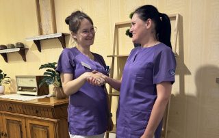 Mit einem herzlichen Händedruck übergibt die bisherige Wohnbereichsleitung des SeneCura