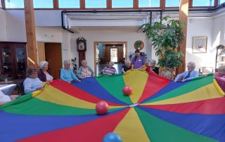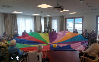 Großen Spaß mit dem Schwungtuch haben die Senior:innen im SeneCura