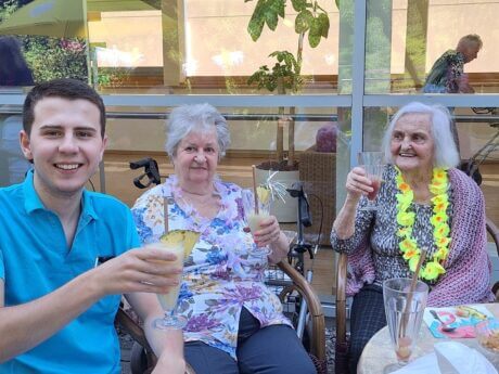 Im SeneCura Laurentius-Park Bludenz wurde letzte Woche ein sommerlicher Cocktail-Nachmittag veranstaltet. Bei bestem Sommerwetter verwöhnten die Mitarbeiterinnen Angelika Schwaninger und Astrid Simon die Bewohner:innen und Angehörigen mit tollen Cocktails. Die fruchtigen und vitaminreichen Kreationen aus dem Rauchtal, wie der „Sanfte Engel“ oder die Sommerbowle  fanden regen Anklang.