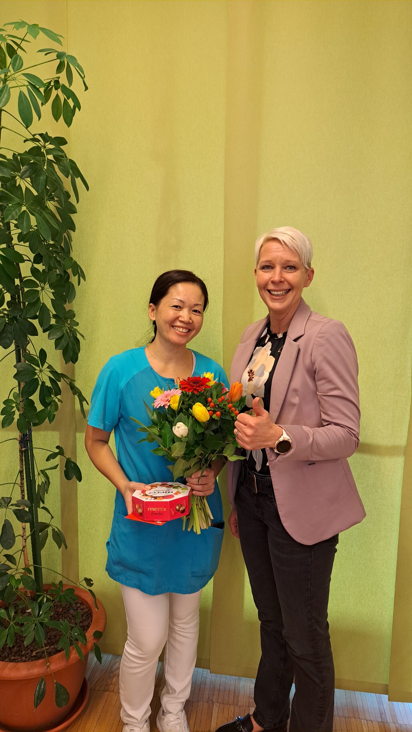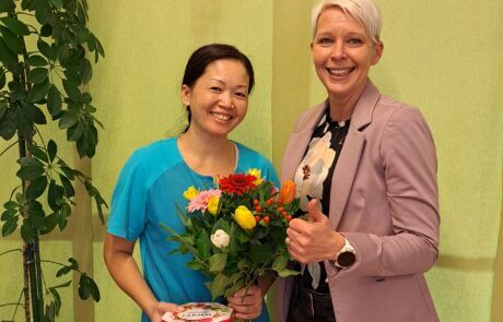 Im SeneCura Waldhaus gab es kürzlich einen Grund zu feiern. Das gesamte Team des Hauses gratuliert der Kollegin, Sitog Renny, zur erfolgreich abgeschlossenen Ausbildung. Renny hat neben der Arbeit im SeneCura Waldhaus die Ausbildung zur Pflegeassistentin erfolgreich abgeschlossen. Anlässlich dieses Ausbildungsabschlusses wurde Renny einen wunderschönen Blumenstrauß überreicht.