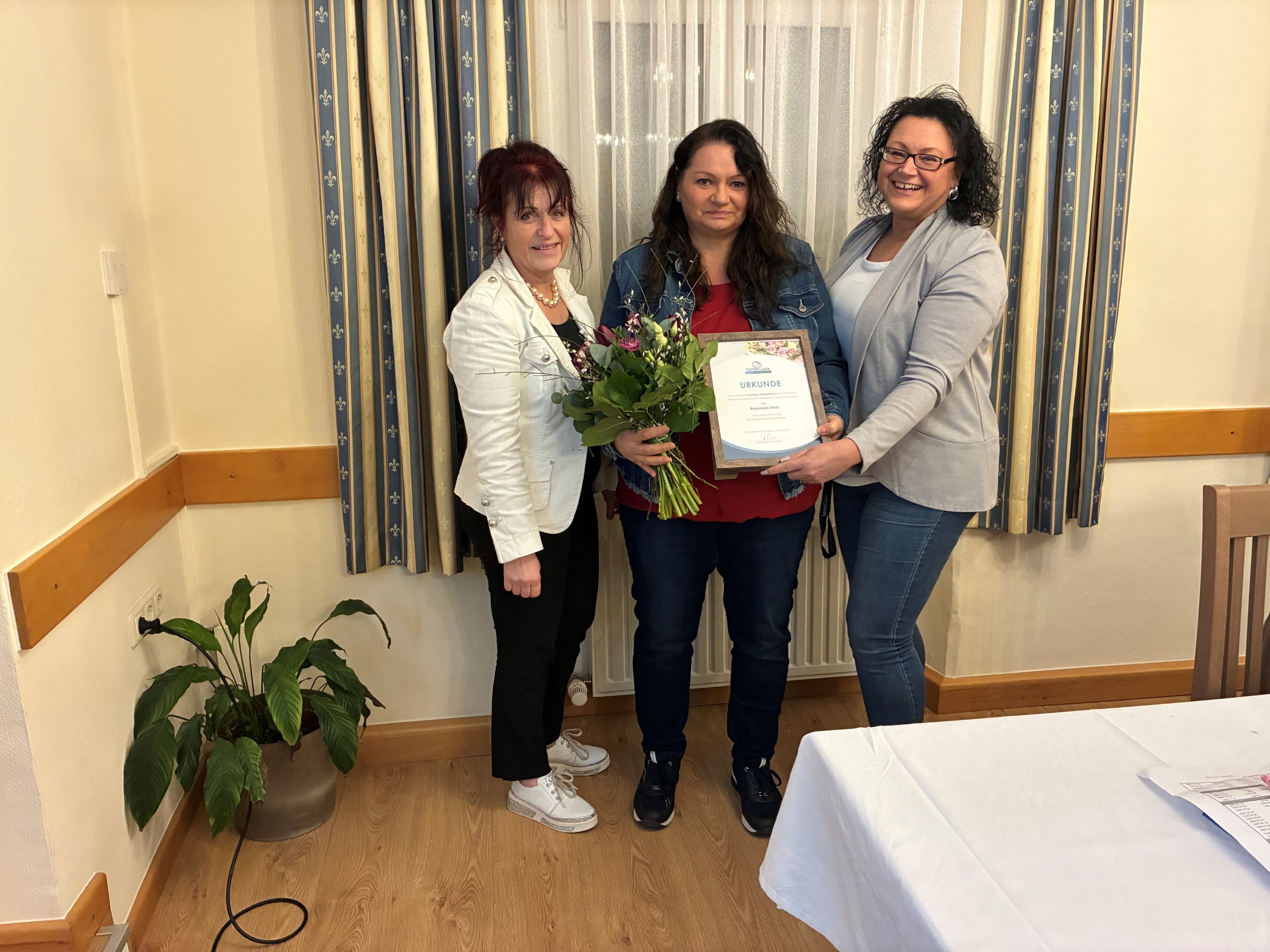 Hausleitung Sandra Masser und das gesamte Team bedanken sich herzlich für die langjährige Treue, den großen Einsatz und die wertvolle Arbeit für die Bewohnerinnen und Bewohner. Wir gratulieren den Jubilarinnen sehr herzlich und freuen uns auf viele weitere gemeinsame Jahre!