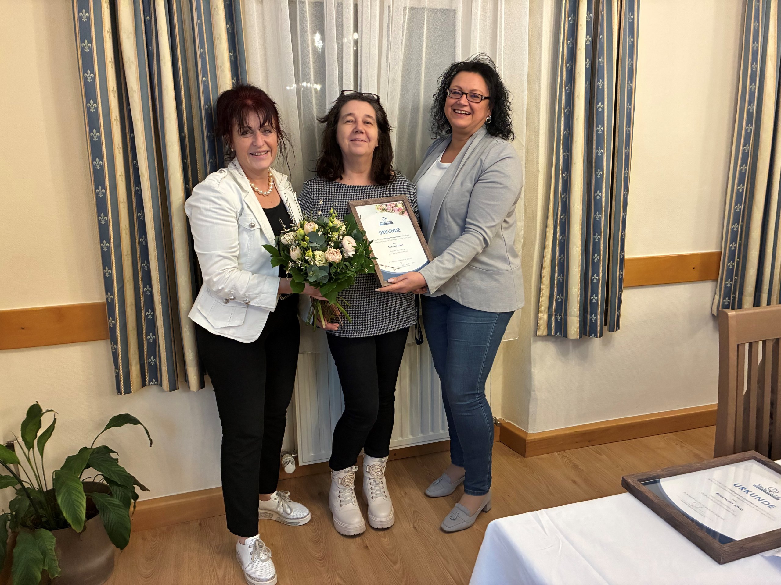 Silvia Rossmann aus der Wäscherei ist bereits seit 15 Jahren Teil des Hauses und sorgt mit ihrem Einsatz täglich für Ordnung und Wohlbefinden. Ebenfalls seit 15 Jahren unterstützt Edeltraud Krenn als Pflegeassistentin mit viel Engagement und Herz die Betreuung der Bewohnerinnen und Bewohner. Dijana Barbas, diplomierte Gesundheits- und Krankenpflegerin (DGKP), feierte ihr 5-jähriges Jubiläum und ist eine wertvolle Stütze im Pflegeteam.