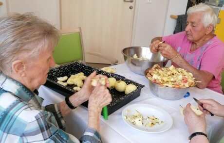 Im SeneCura Sozialzentrum St. Margarethen wollten die Bewohner:innen kürzlich gemeinsam Apfelstrudel backen. Eifrig schälten und zerkleinerten die Seniorinnen sowie Senioren die frischen Äpfel. Dabei plauderten die Bäcker:innen über frühere Zeiten und alle konnten sich lebhaft daran erinnern, wie die Fruchtstrudel zu Hause gemeinsam mit der Mama oder der Oma zubereitet wurden. Verfeinert wurden die geschnittenen Äpfel mit etwas Zucker, Zimt, Vanillezucker sowie Nüssen, die danach auf dem Strudelteig verteilt wurden. Auch das Einrollen übernahmen die fleißigen Helfer:innen und zum Schluss wurden alle Strudel mit Ei bestrichen und ins Backrohr gegeben. Schon nach kurzer Zeit verbreitete sich der köstliche Duft der goldbraun gebackenen Köstlichkeiten im ganzen Haus und die Vorfreude auf die besondere Jause war riesengroß. Nach der Kostprobe waren sich die Bewohner:innen schnell einig, dass dies der beste Apfelstrudel seit Langem war.