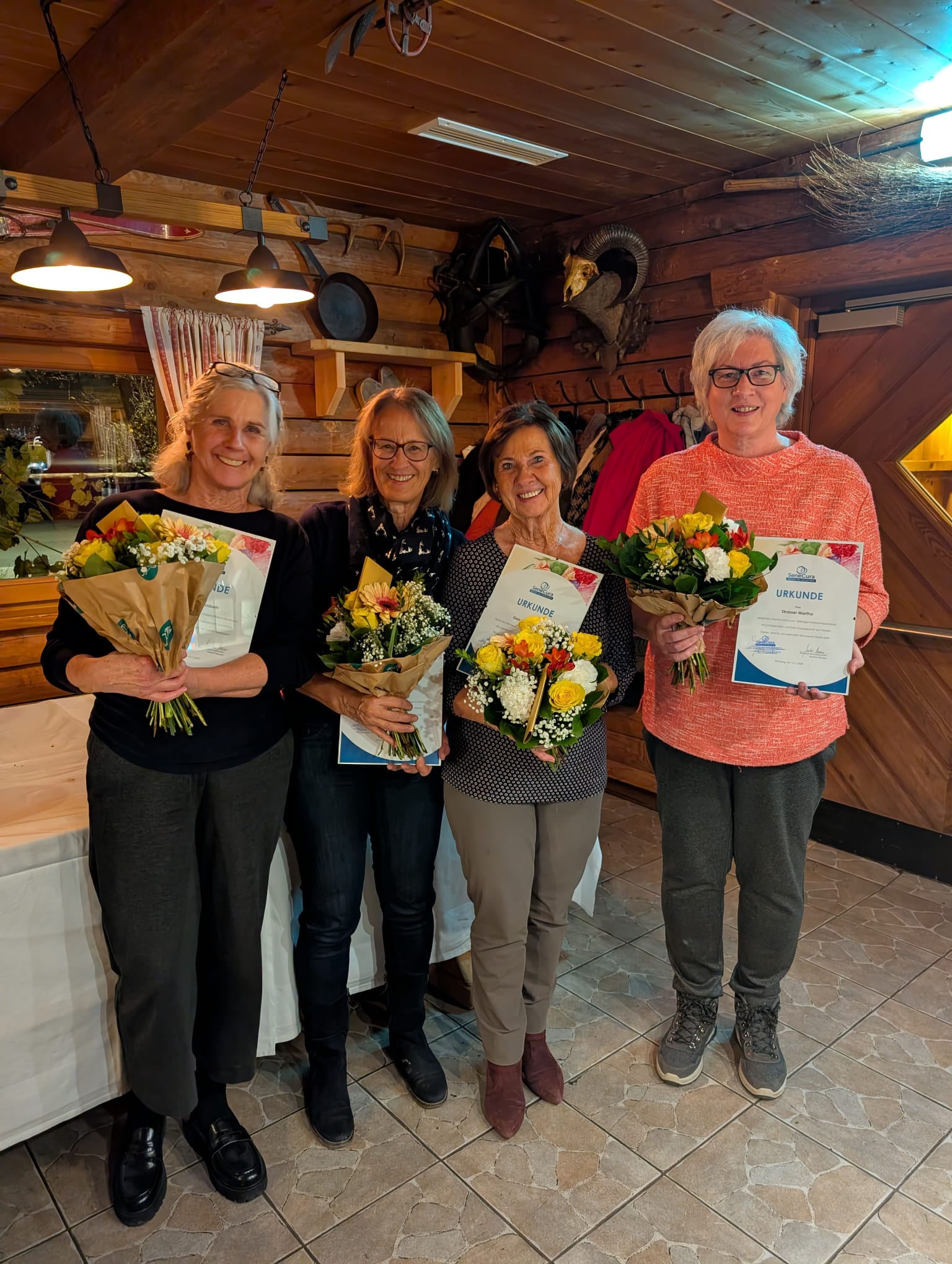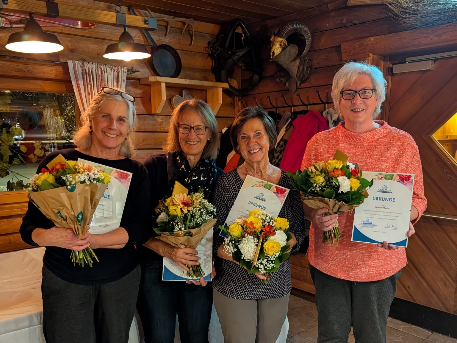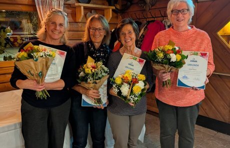 Ein besonderer Höhepunkt des Abends war die Ehrung von Elisabeth, Anita, Elisabeth und Martha, die seit zehn Jahren Menschen in ihren letzten Lebenstagen begleiten. Mit viel Empathie, Stärke und Wärme schenken sie Betroffenen und Angehörigen wertvolle Unterstützung.