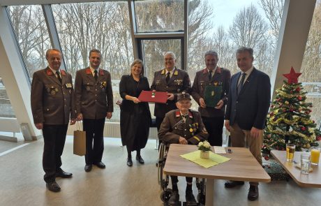Anlässlich zum 70-jährigen Jubiläum und Mitgliedschaft der FF Klein Frannach wurde der Bewohner des SeneCura Pflegezentrums Schwarzau, Michael Stradner, mit einer Ehrenurkunde vom Landeshauptmann der Steiermark ausgezeichnet. Die Überbringer Herr Bürgermeister Prödl aus Kirchbach, HBL Herr Platzer inklusive seinen Kammeraden und Abschnittsbrandinspektor Fröhlich überreichten diese ehrenvolle Urkunde sowie das Abzeichnen sichtlich mit Stolz und Würdigung des Ehrenamts. Gesamt gesehen zählt diese sehr ehrenvolle Auszeichnung zum ersten Highlight in Schwarzau 2025! „70 Jahre Freiwillige Feuerwehr, was für ein Ereignis!“, meint Julia Junger, Hausleitung des SeneCura Pflegezentrums Schwarzau begeistert.