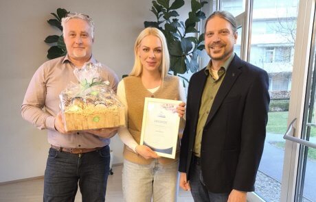 Im Rahmen eines großen Teammeetings wurden im SeneCura Pflegeheim Graz-Lend drei Mitarbeiterinnen und Mitarbeiter für ihr 10-jähriges Dienstjubiläum geehrt. DGKP Amela Brcina, Pflegeassistent Bogdan Gabor sowie Gastro-Mitarbeiterin Ilinka Scevic wurden für ihre langjährige Treue, ihr Engagement und ihren wertvollen Beitrag zum Haus ausgezeichnet. Das SeneCura Pflegeheim Graz-Lend bedankt sich herzlich für den Einsatz und die gute Zusammenarbeit in den vergangenen Jahren und freut sich auf viele weitere gemeinsame Jahre.