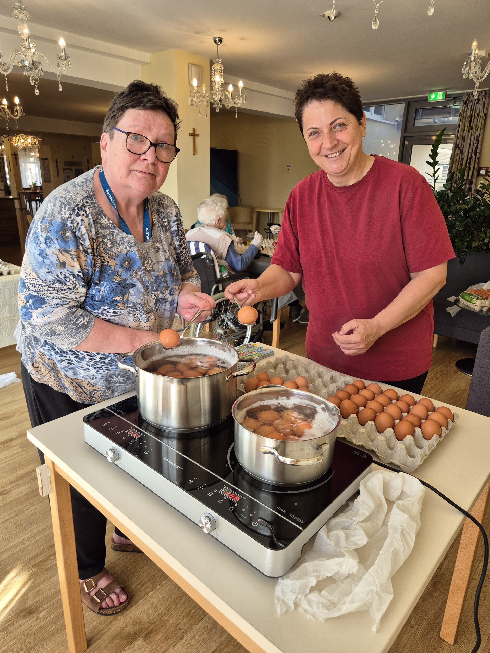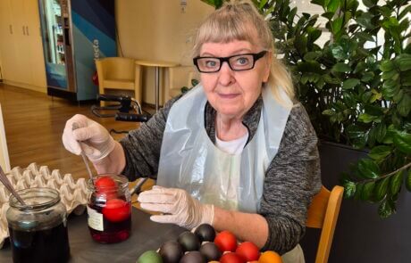 Um sich optimal auf die Osterzeit vorzubereiten färbten die Bewohner:innen des SeneCura Sozialzentrums Unterpremstätten vor kurzem bunte Ostereier. Die Arbeiten brachten jede Menge Freude und frischen Wind in das Sozialzentrum. Ganze 150 kunterbunte Eier konnten die Seniorinnen und Senioren färben und freuten sich immer mehr auf die Osterfeiertage.