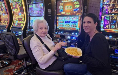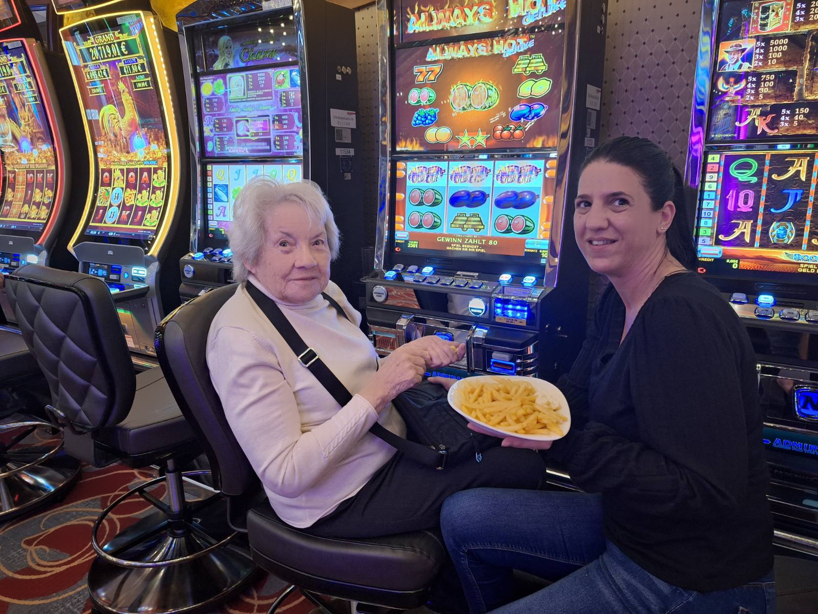 Vom Hafen aus führte der Weg entlang der Seepromenade bis zum Casino, das pünktlich erreicht wurde. Vor Ort widmete sich Frau Lichtenegger mit großer Freude den Spielautomaten, die sie noch aus ihrer früheren Reise nach Las Vegas kennt. Mit etwas Glück konnte sie sogar einen kleinen Gewinn erzielen. Dabei stellte sie fest: „Geld erleichtert das Leben, doch je älter man wird, umso mehr schätzt man die Gesundheit.“ Im Anschluss wurde gemeinsam im Casino gegessen und der Ausflug in entspannter Atmosphäre genossen, bevor es mit dem Zug zurück nach Hohenems ging. Gegen 18:30 Uhr kehrten beide wieder ins Haus zurück. Der Ausflug war für Frau Lichtenegger ein besonderes Erlebnis, das ihr große Freude bereitet hat. Sie hat bereits den Wunsch geäußert, diesen Ausflug im nächsten Jahr zu wiederholen.