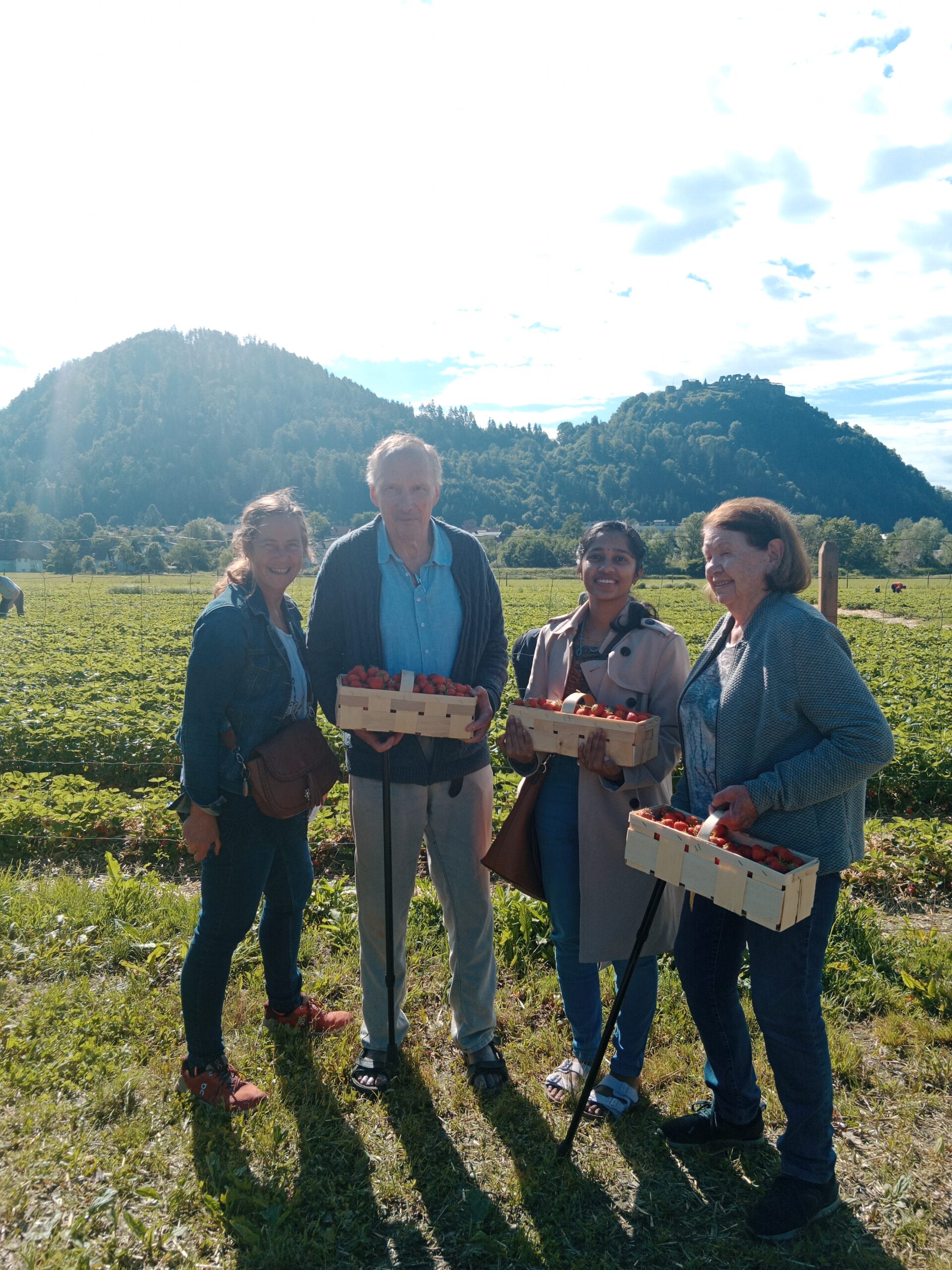 Im SeneCura Pflegezentrum Afritz wurde die Erdbeerzeit so richtig eingeläutet, als die Bewohner:innen kürzlich einen Ausflug zu einem Erdbeerfeld mit wunderschöner Kulisse erlebten. Als die Erdbeerkörbe gefüllt waren, kehrten die Bewohner:innen ins Pflegezentrum zurück und backten unter der Anleitung sowie der tatkräftigen Unterstützung vom ehemaligen Bäckermeister, Heizmann Johann, köstliche Obsttorten. Diese wurde anschließend mit viel Freude zu Ehren aller Väter bei der Vatertagsfeier verzehrt.