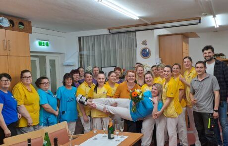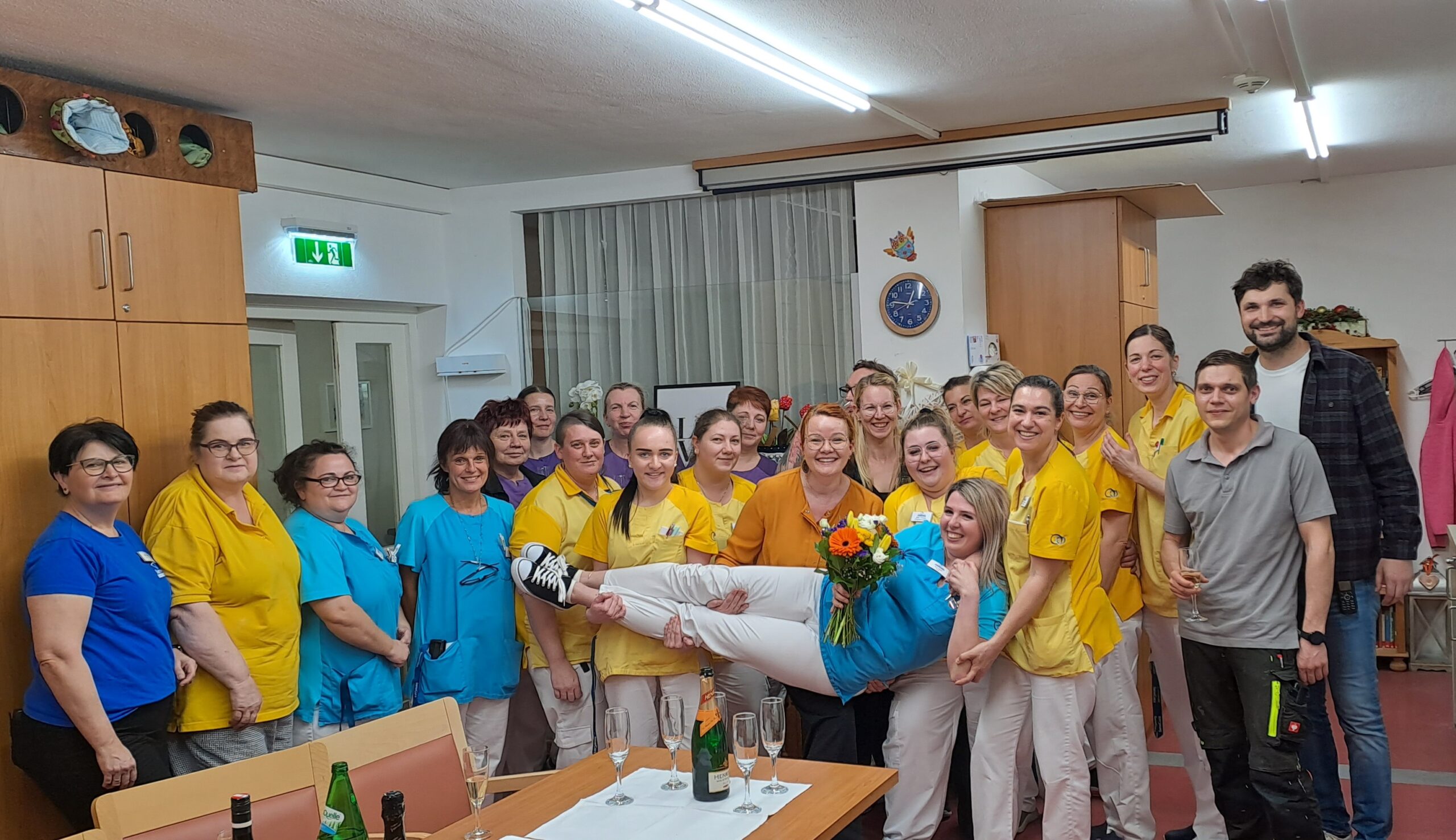 Im SeneCura Sozialzentrum Söchau gab es vor Kurzem einen Grund zu feiern. DGKP Birgit Kurz hat die Ausbildung zur Praxisanleiterin mit einem Erfolg abgeschlossen. Mit viel Fleiß und Engagement hat sie ihr Ziel erreicht und das gesamte Team des Hauses gratuliert Birgit herzlich. Zu diesem Anlass ließen es sich ihre Kolleginnen und Kollegen nicht nehmen und überreichten Birgit einen tollen Blumenstrauß. Begleitet von einem Glaserl Sekt wurde der Ausbildungsabschluss gebührend gefeiert.