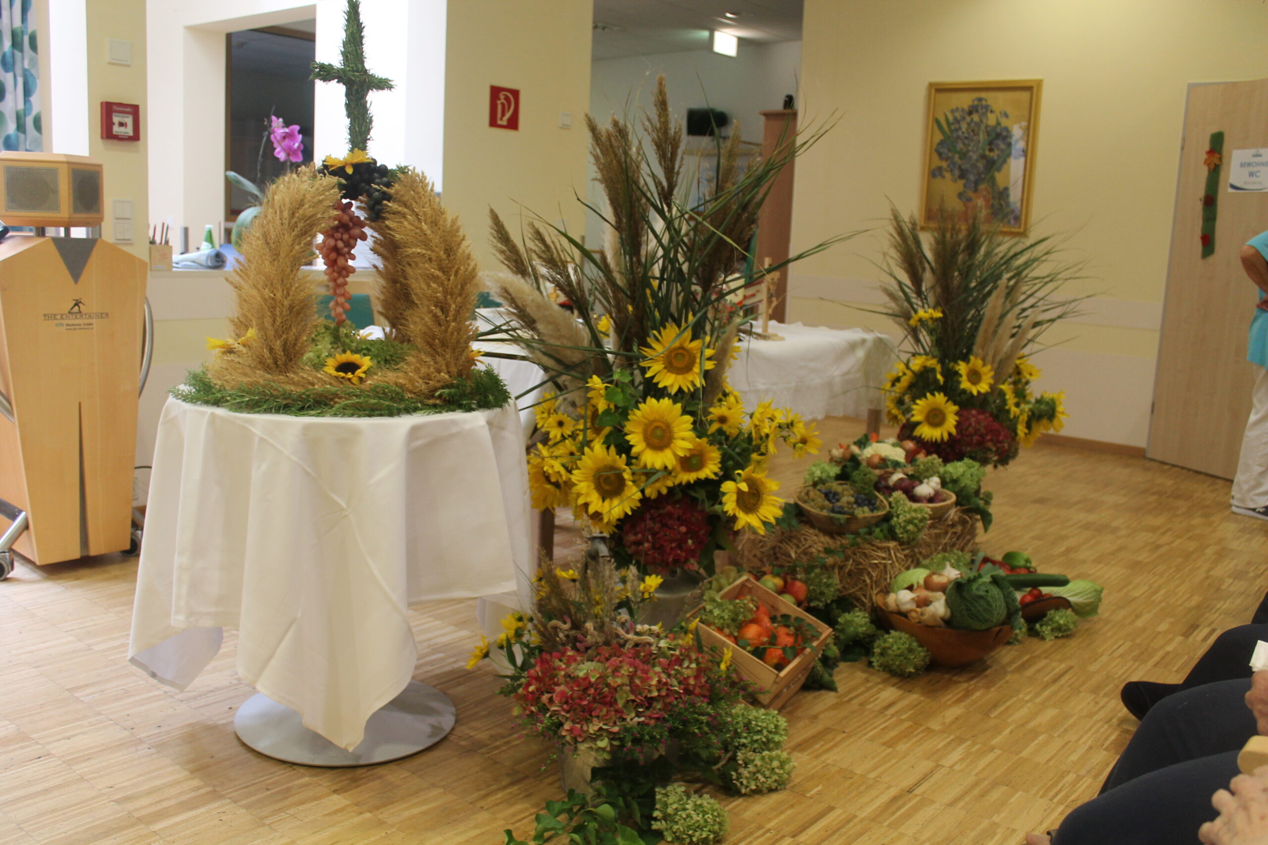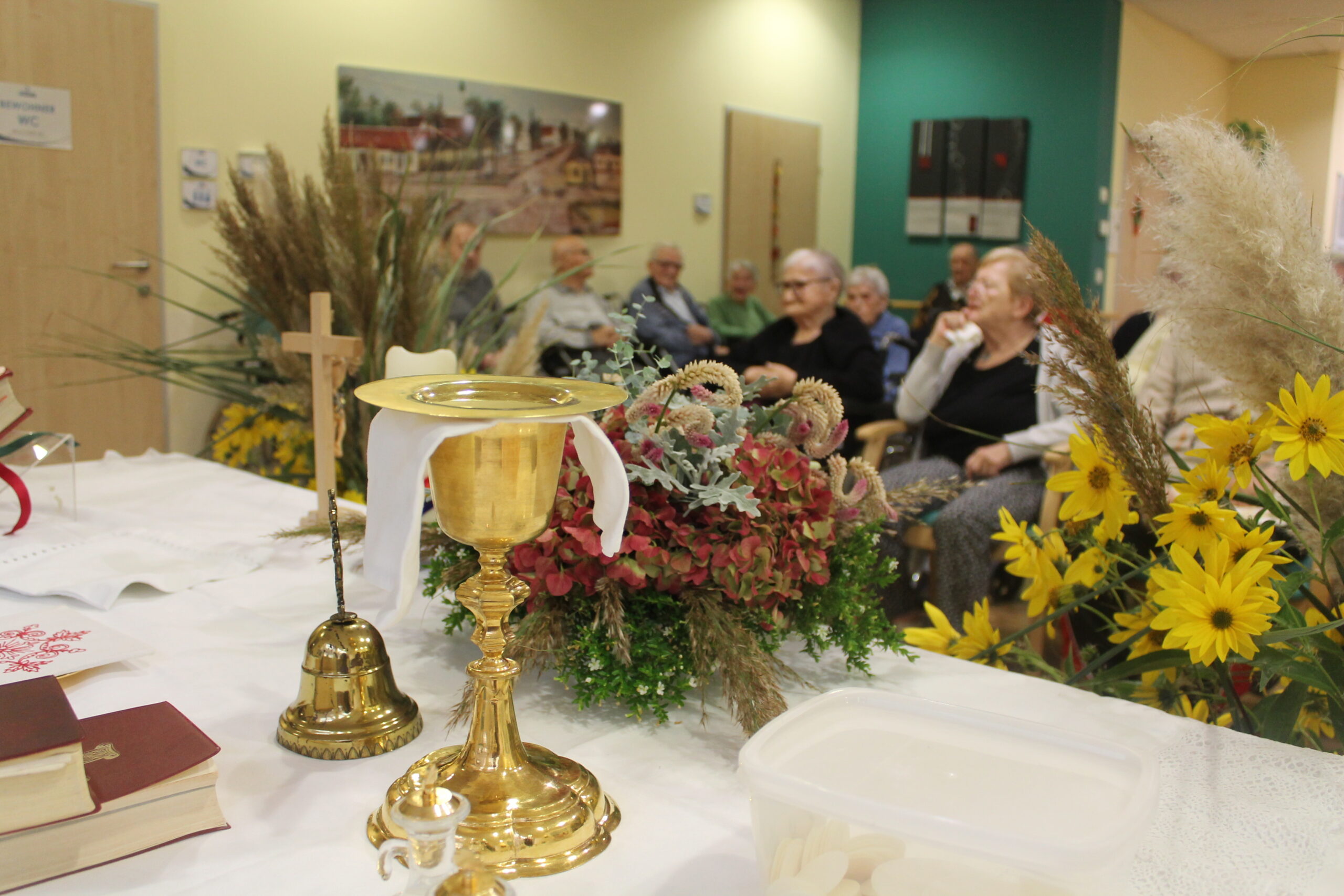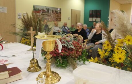 Da im SeneCura Sozialzentrum Nikitsch Tradition einen hohen Stellenwert hat, wurde die Erntedankmesse im Haus besonders schön gefeiert. Die heilige Messe wurde von Pfarrer Bozidar Blazevic gelesen und die das Team unterstützte bei der Messe. Der schön hergerichtete Altar erstrahlte dabei in vollem Glanz und auch das selbstgebackene Brot wurde selbstverständlich geweiht. Nach der Messe wurde dann gemeinsam mit allen Anwesenden ein gemütliches Beisammensein genossen.