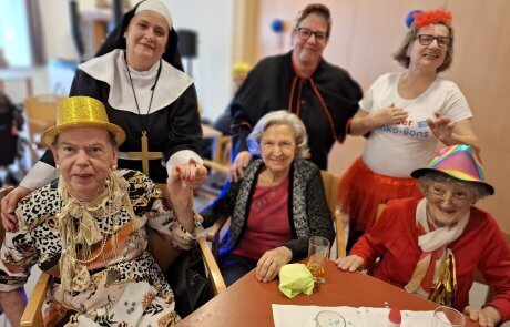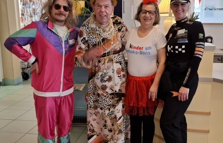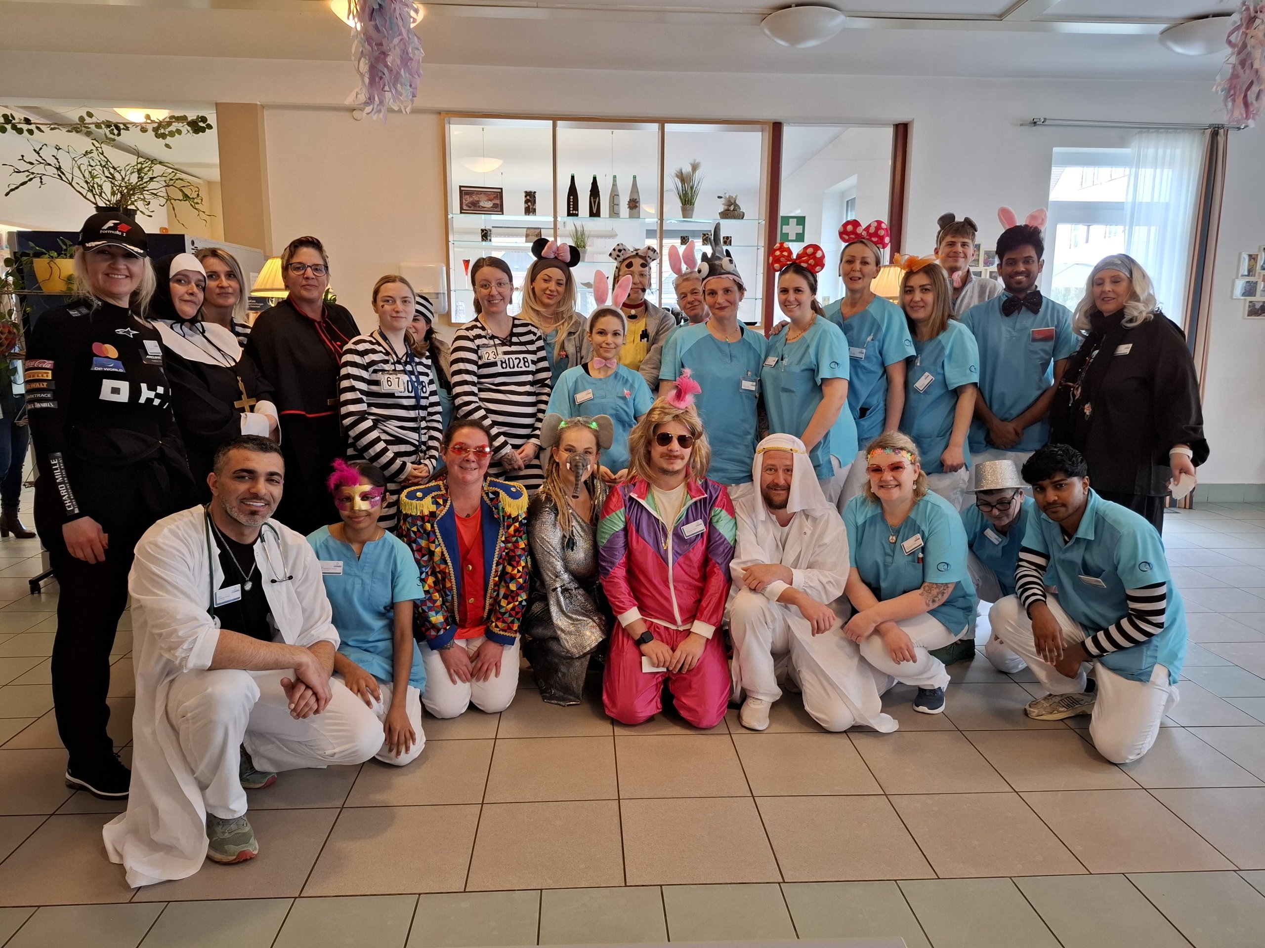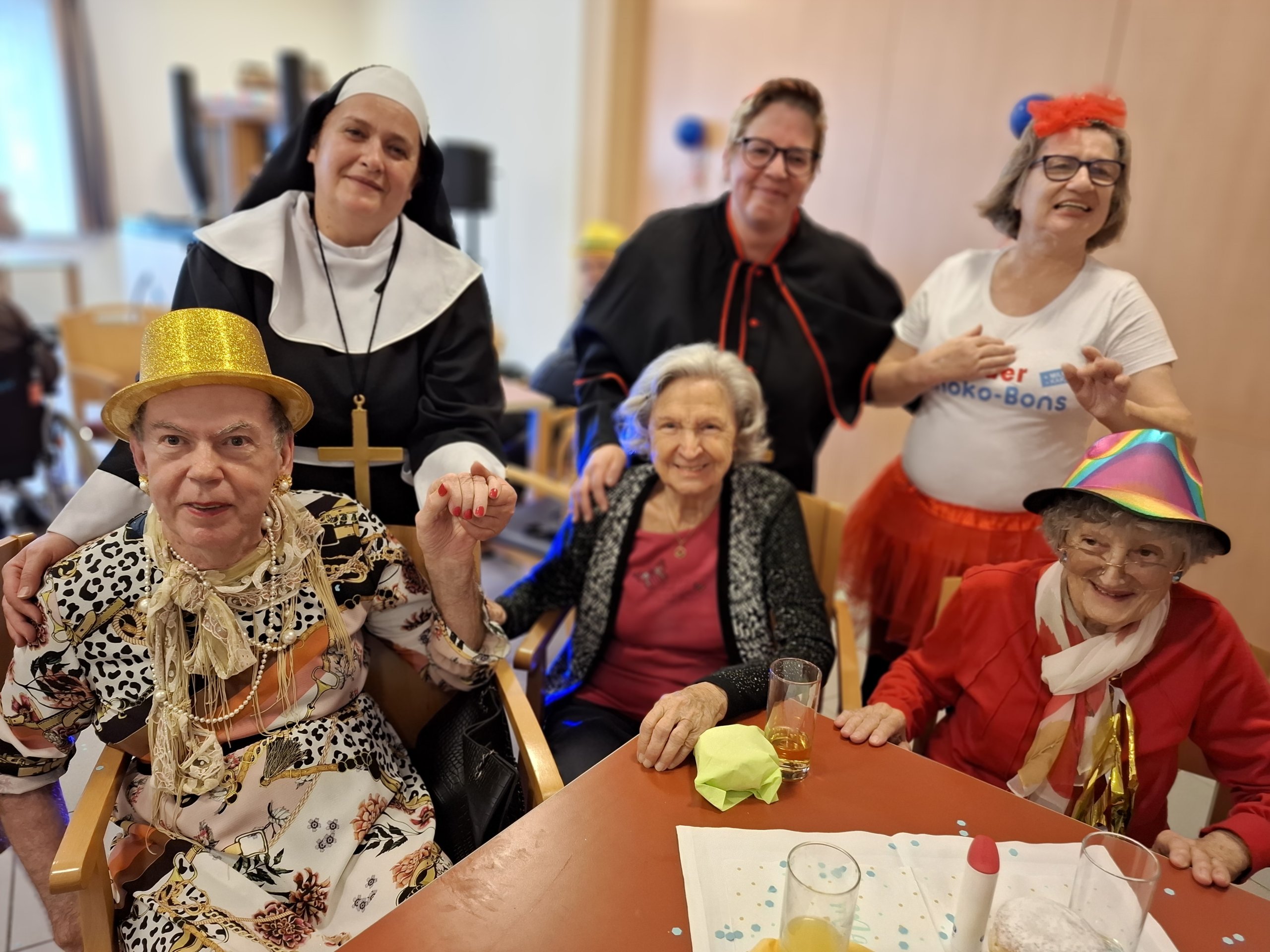 Die bunten und kreativen Kostüme der Kolleg:innen sorgten für bewundernde Blicke bei unseren Bewohner:innen und brachten zusätzlichen Schwung in die gelungene Faschingsfeier.