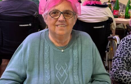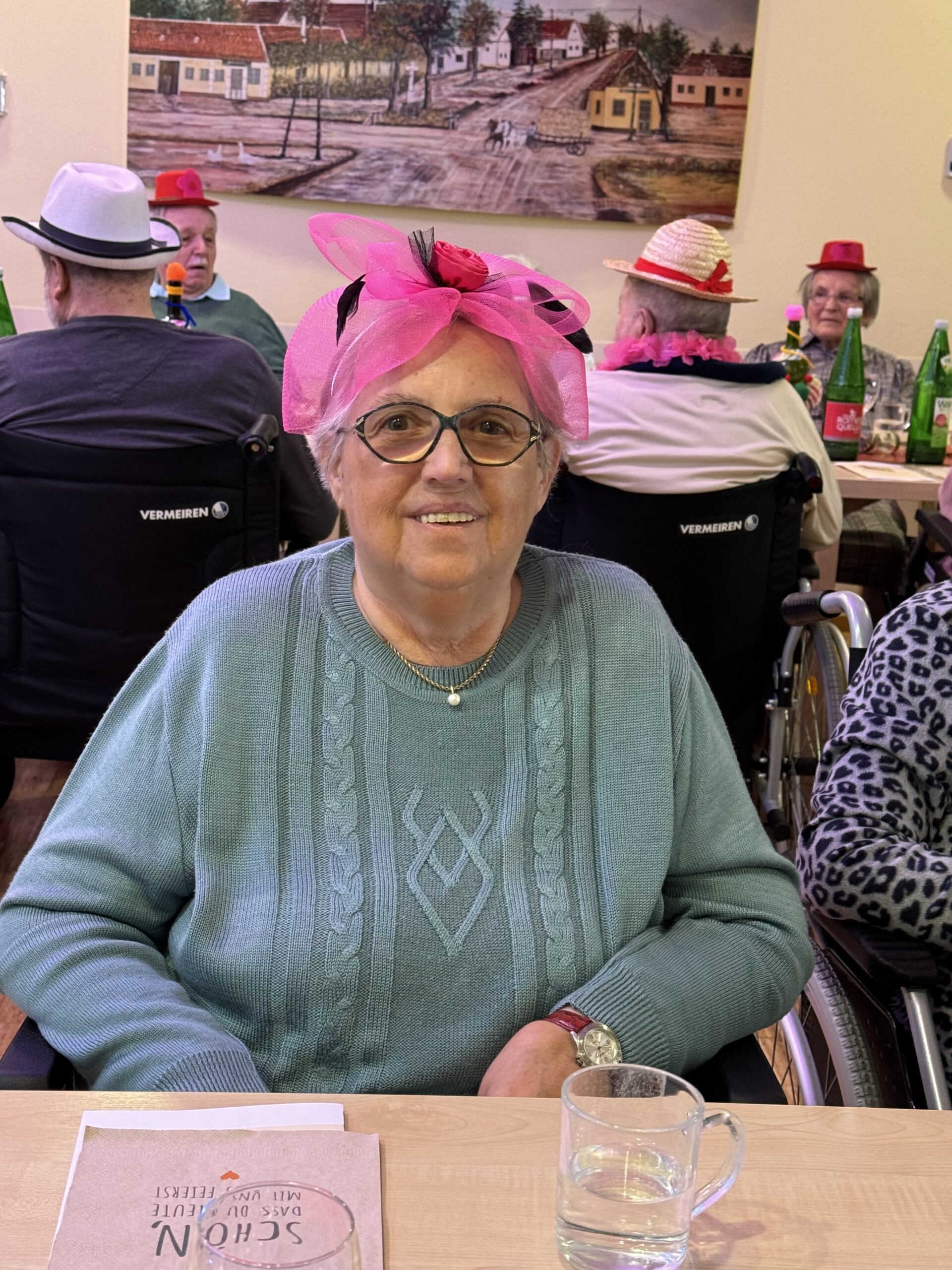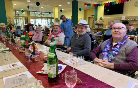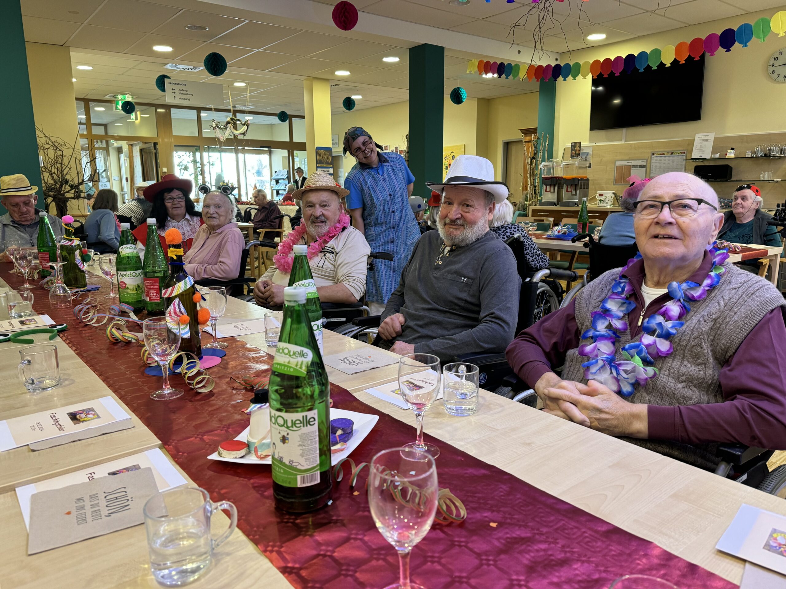 Die hübsch gedeckte Faschingstafel mit gut gelaunten Bewohner:innen.