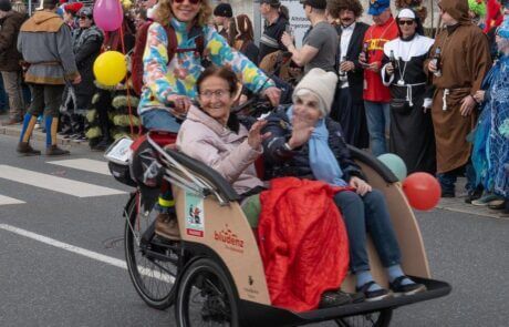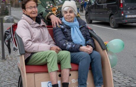 Anschließend ging es für zwei Bewohnerinnen, Frau Ehrenbrandtner und Frau Henn, mit der ehrenamtlichen Rikschafahrerin Veronika Lattner zur Schlüsselübergabe bei der Stadt. Bei strahlendem Sonnenschein und inmitten der bunten Faschingsgesellschaft erlebten die Seniorinnen einen unvergesslichen Ausflug.