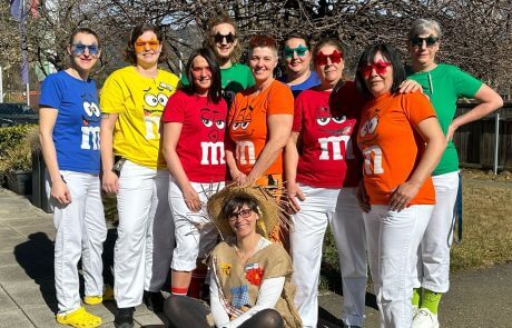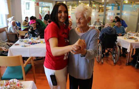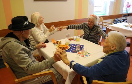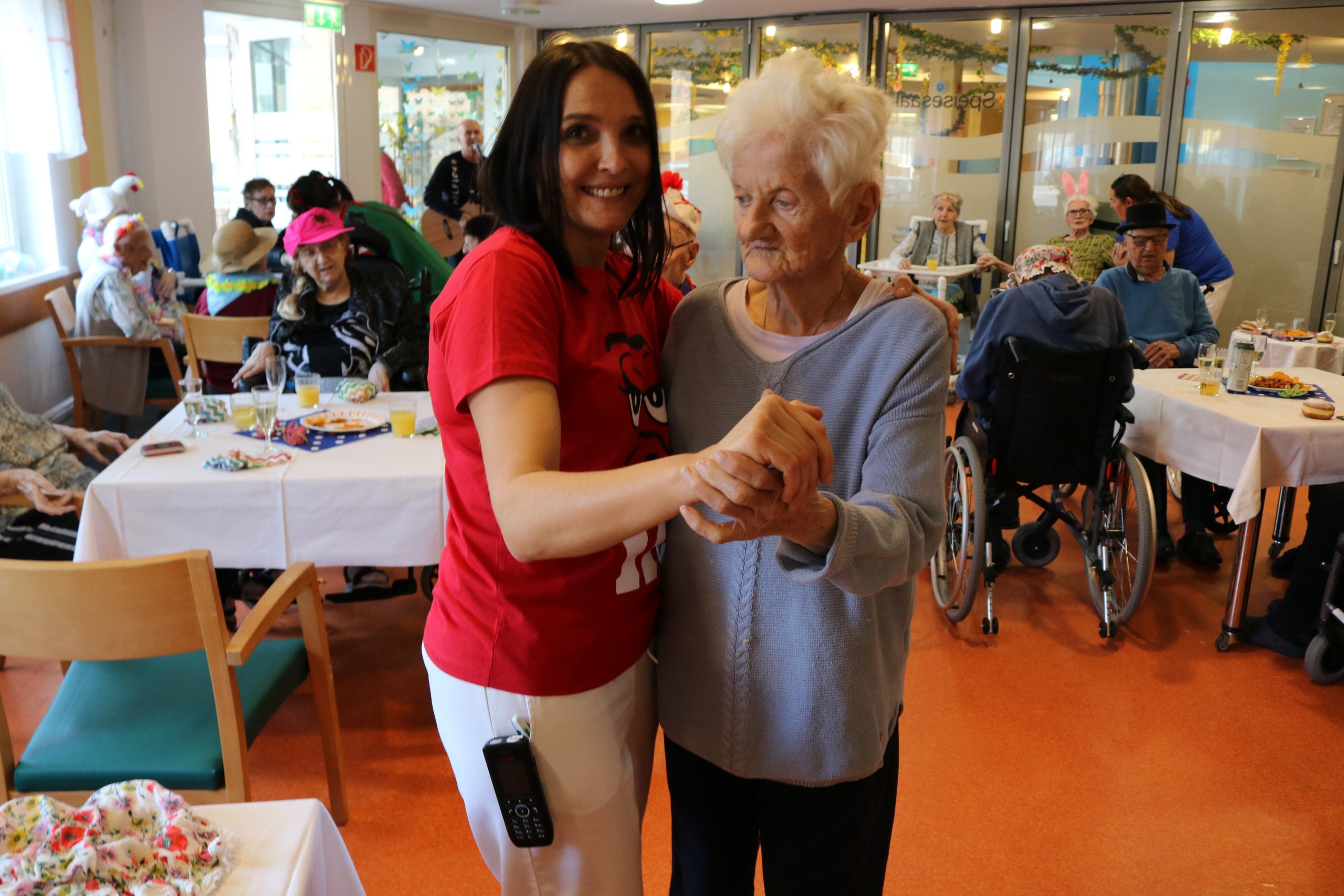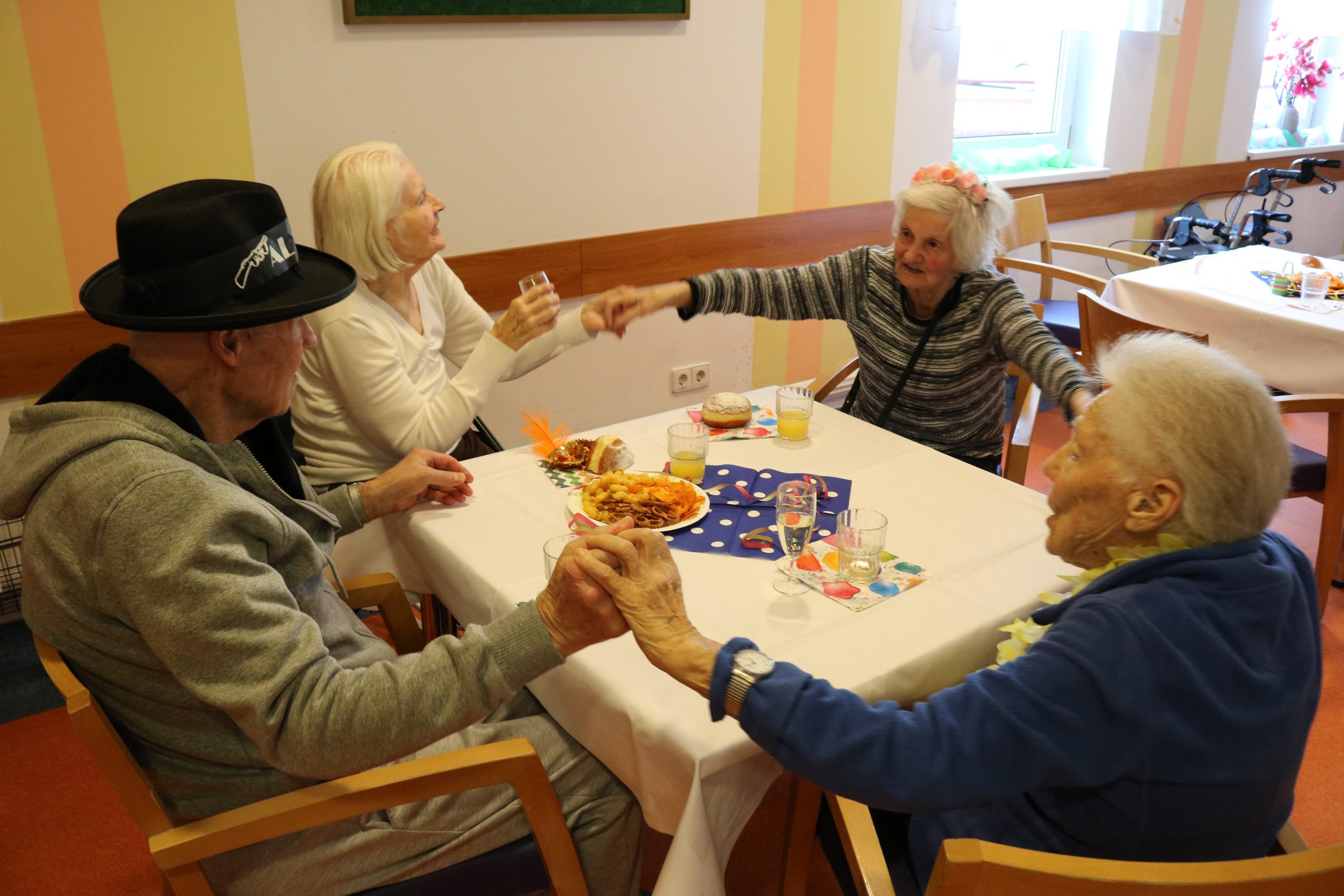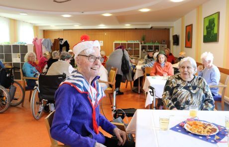 Heiter machten sich die Faschingsnarren auf den Heimweg, da alle am Nachmittag die große Faschingsfeier im Haus mit Live Musik erwartete. Die Bewohner:innen wurden durch die Seniorenanimation und durch Helmut aus Kapfenberg, der uns musikalisch durch den Nachmittag führte, aufs herzlichste begrüßt. Als Einlasskriterium galt es „ein Faschingsutensil“ zu tragen und jede:r konnte sich ein passendes Utensil aus der Faschingskiste aussuchen. Die Mitarbeiter:innen waren heuer als M&M´s verkleidet, was bei den Bewohner:innen gut ankam. Ein Glaserl Sekt und einen Krapfen musste man sich „hart verdienen“, denn jede:r Bewohner:in musste ein kleines Rätsel oder eine kleine Rechenaufgabe lösen. Bei lustiger Musik ging es mit Gesang und Tanz hoch her.