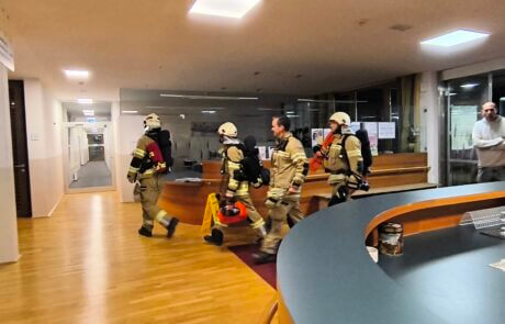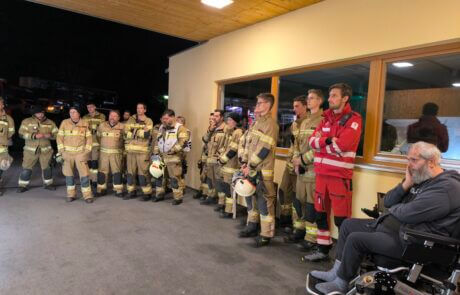 Letzte Woche fand im SeneCura Sozialzentrum Eben eine Feuerwehrübung statt. Die Freiwillige Feuerwehr übte hierbei die Evakuierung von Bewohner:innen. So wurde Bewohner Hendrik aus seinem Zimmer evakuiert. Die Übung war für alle sehr spannend und vor allem lehrreich. Im Anschluss gab’s für alle Mitarbeiter:innen und Feuerwehrmänner und –frauen Würstel und Getränke.