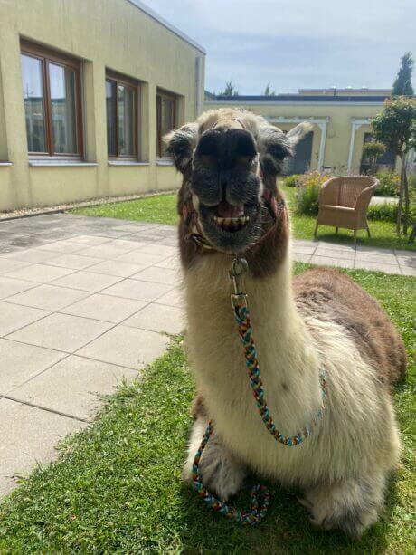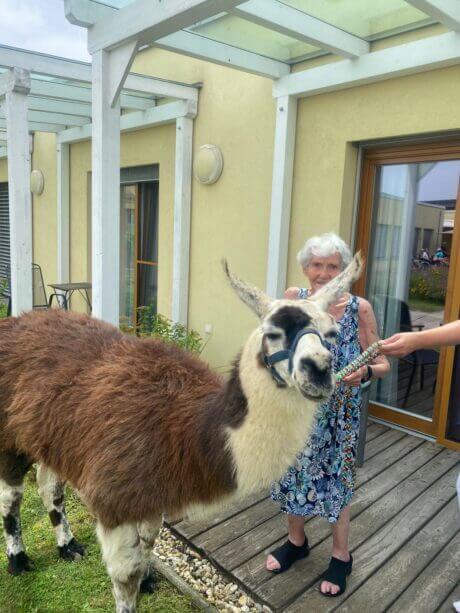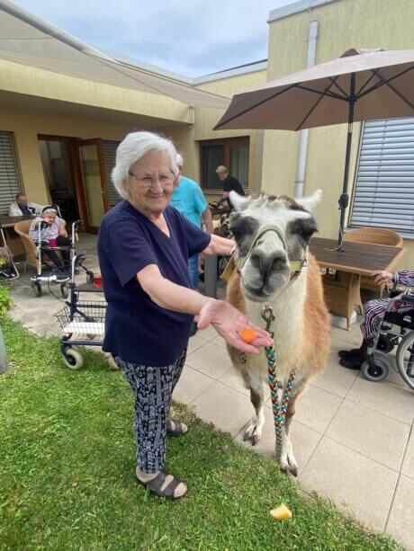 Vor kurzem ging es im SeneCura Sozialzentrum Rust rund, als das Team des Hauses für die Bewohner:innen einen Besuch von flauschigen Vierbeinern organisierte: Freundliche Lamas verbrachten einen sonnigen Nachmittag mit den Bewohner:innen im Garten. Neugierig und begeistert tasteten sich die Bewohner:innen an die freundlichen Tiere heran und es dauerte nicht lange, da streichelten sie die flauschigen Freunde schon. Auch bei der Fütterung durften die Seniorinnen und Senioren tatkräftig unterstützen. Die Bewohner:innen freuten sich sehr über die vierbeinigen Gäste und wünschen sich schon bald einen weiteren Besuch der Lamas.
