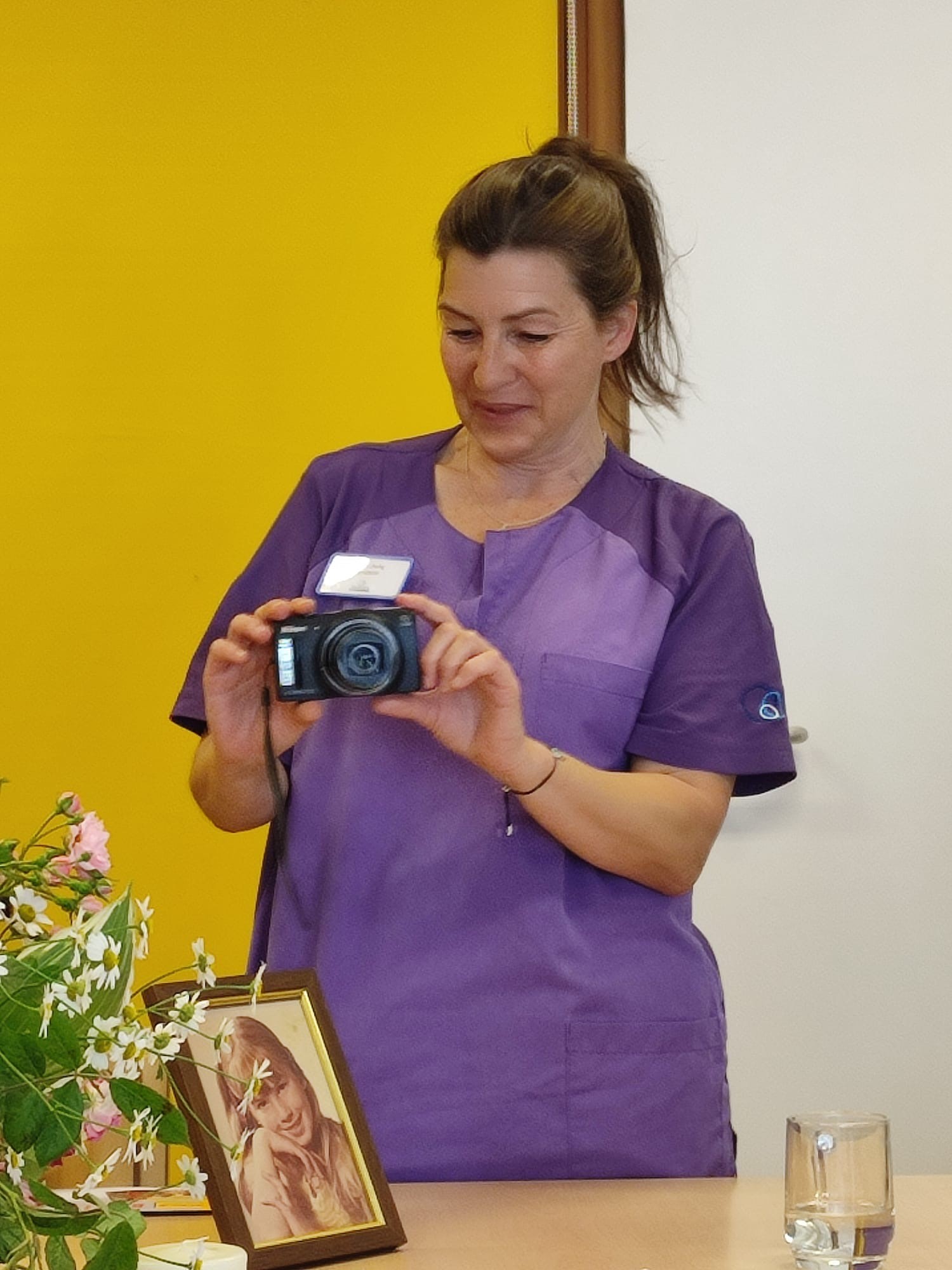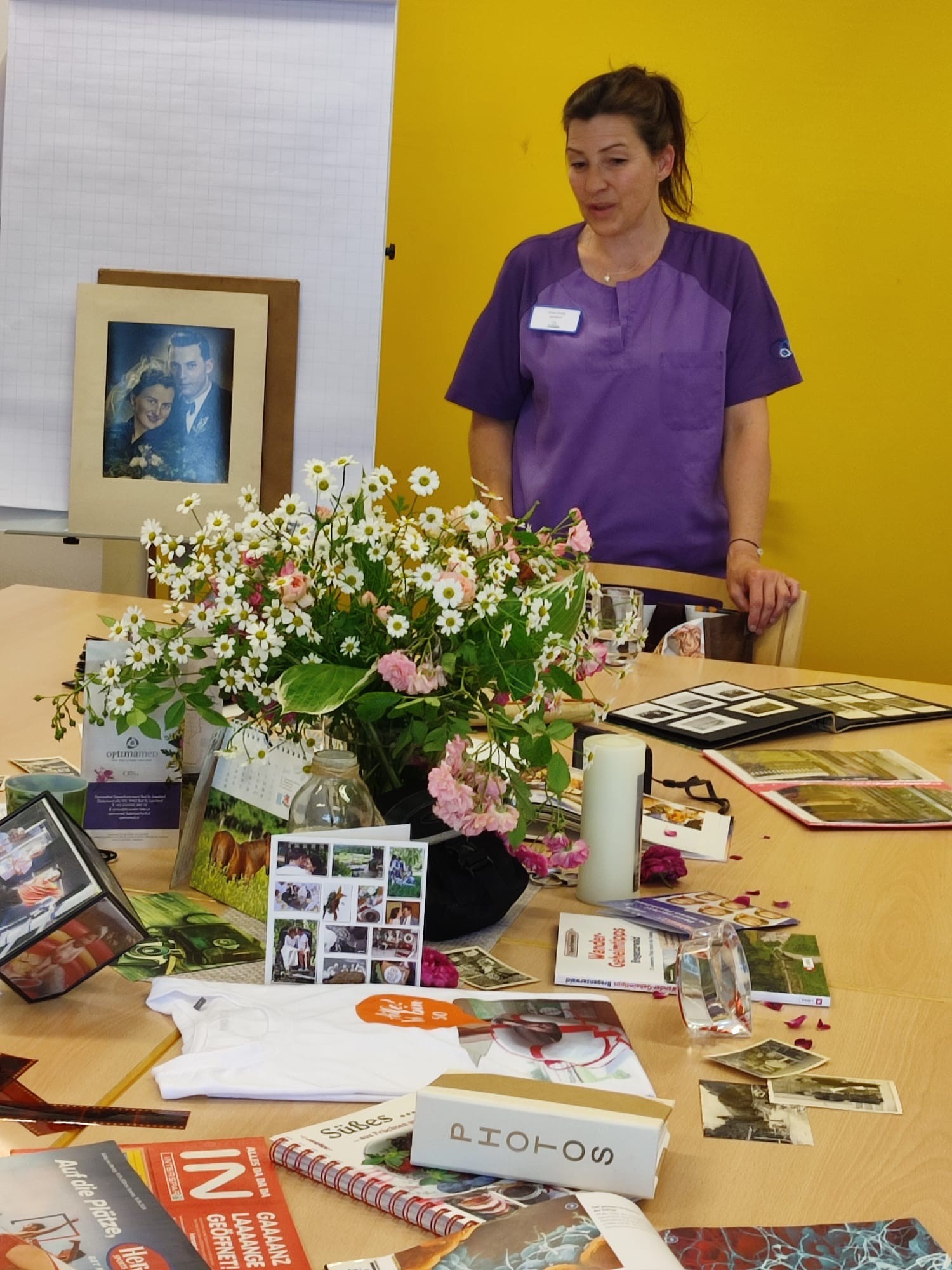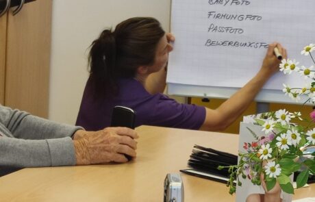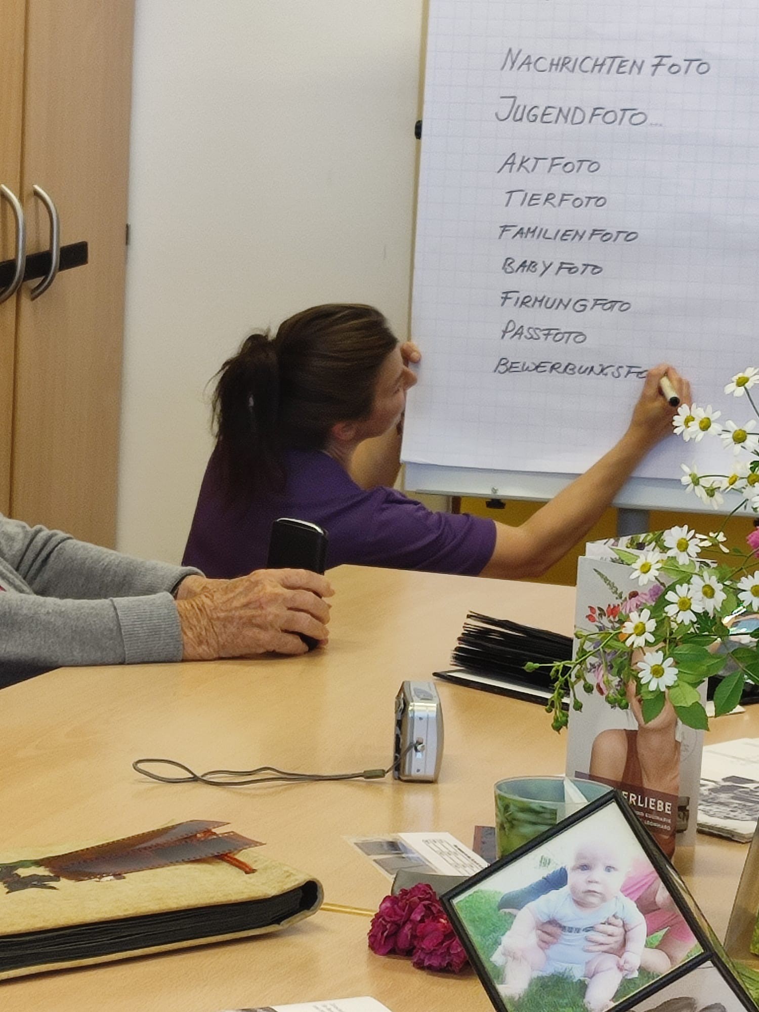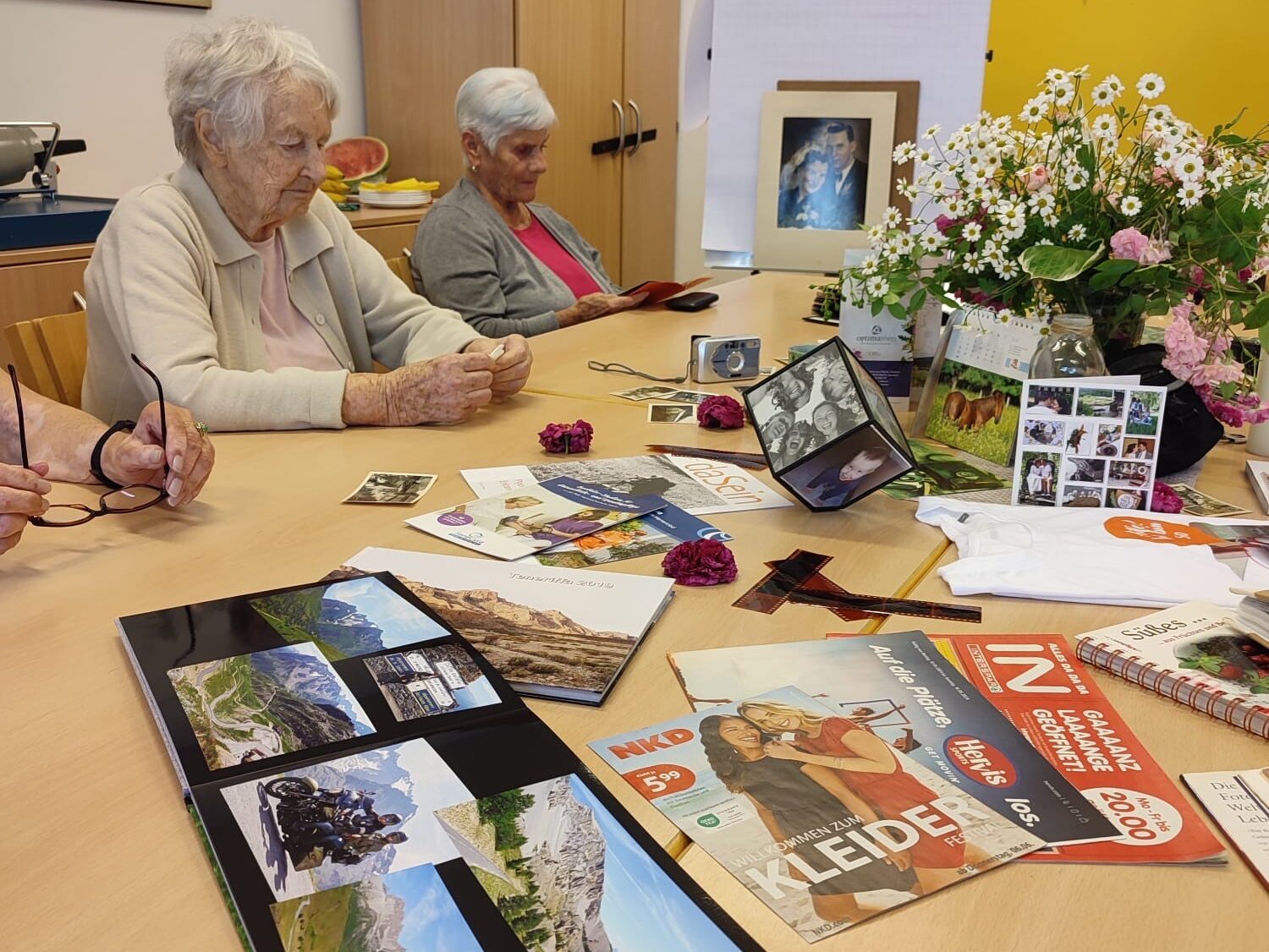 Das Thema Foto sowie Fotografie stand im Mittelpunkt dieses besonderen Nachmittags. Silvia, die derzeit die Schule für Sozialbetreuungsberufe absolviert, hat mit viel Hingabe und Kreativität ein abwechslungsreiches Programm zusammengestellt. Ziel war es, den Bewohner:innen die Möglichkeit zu geben, in Erinnerungen zu schwelgen und das Thema Fotografie näherzubringen. Der Nachmittag begann mit einer kurzen Einführung in die Thematik. Im Anschluss wurden gemeinsame Situationen besprochen, welche die Bewohner:innen zu Fotografien haben. Zuletzt konnten die Bewohner:innen sich noch fotografieren lassen und erhalten die Bilder als kleines Dankeschön von Silvia.
