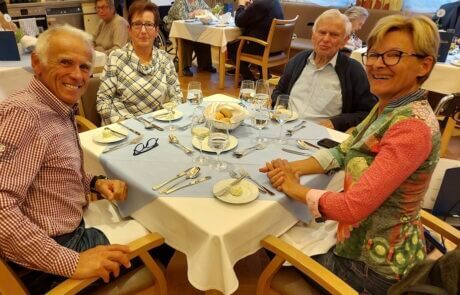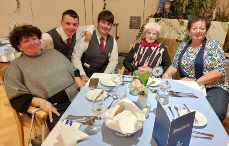 Im festlich dekorierten Speisesaal erwartete die Gäste ein Abend voller kulinarischer Köstlichkeiten. Das Küchenteam des SeneCura Sozialzentrums Frauenkirchen zauberte ein exquisit abgestimmtes 4-Gänge-Menü, das alle Sinne verwöhnte. Von der delikaten Vorspeiseauswahl, einer Leberterrine und einem Camembert Parfait über köstliche Suppenvariationen mit Ganslsuppe oder heißer Zwetschgensuppe bis hin zum kulinarischen Highlight – der gebratenen Gänsekeule – und einem Kürbisrisotto war jedes Gericht liebevoll zubereitet. Abgerundet wurde der Abend durch ein süßes Maronidessert und einer passenden Weinbegleitung, die die Aromen harmonisch ergänzte. Neben der herausragenden Qualität der Speisen trug auch die festliche Atmosphäre mit Tischdekoration, Pflanzenschmuck und sanfter Dinnermusik im Hintergrund zur besonderen Stimmung bei. „Es war ein Abend voller Genuss, und ich habe mich schon lange nicht mehr so wohl gefühlt“, erzählte Johann Soos, einer der Bewohner:innen. „Das Essen war köstlich, und die ganze Atmosphäre war einfach zauberhaft. Es hat sich angefühlt wie ein Fest im Kreise der Familie.“