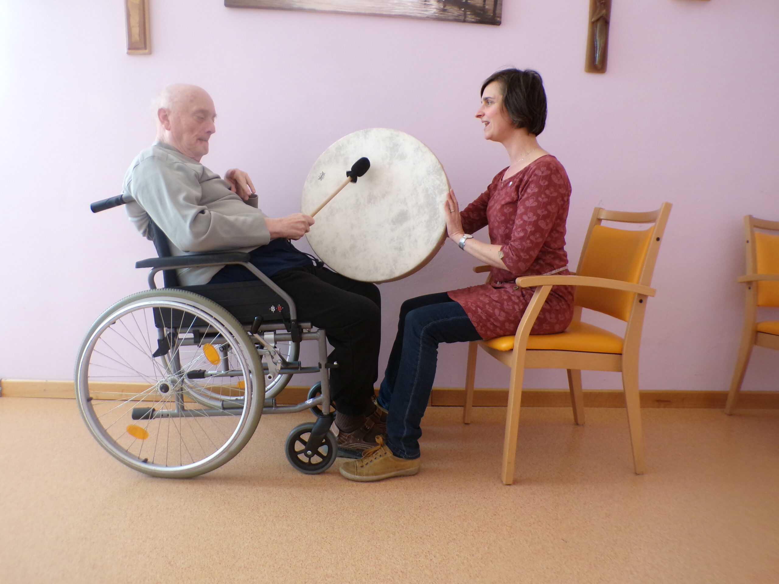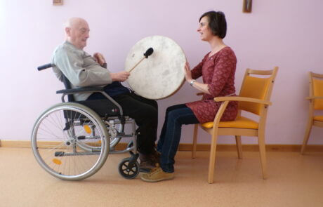 Einmal wöchentlich findet im SeneCura Sozialzentrum Gratkorn die Musiktherapie statt. Hier wird gemeinsam gesungen, gelauscht, getanzt, gelacht, gescherzt – und manches Mal auch getrauert. Musik berührt und bewegt uns in unserem Innersten und stärkt das Gemeinschaftsgefühl. Sie bietet die Möglichkeit, sich nonverbal mitzuteilen und in den Dialog mit anderen zu gehen. Das ist besonders dann relevant, wenn Sprache nicht mehr zur Verfügung steht. Musiktherapie ist eine künstlerisch-kreative Therapieform. Sie dient der Gesundheitsförderung, der Behandlung verschiedener Erkrankungen, der Rehabilitation und der Stärkung sozialer Fähigkeiten. Dabei steht nicht das Defizit, sondern die Stärkung der vorhandenen Ressourcen unserer Bewohner:innen im Vordergrund.