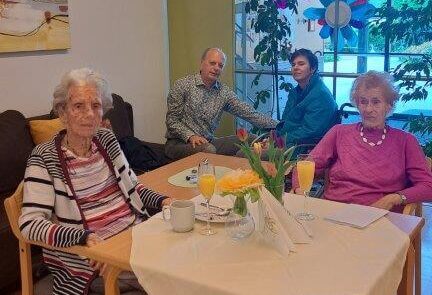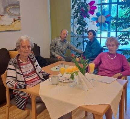 Die Bewohner:innen genießen die Muttertagsfeier.