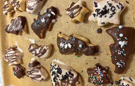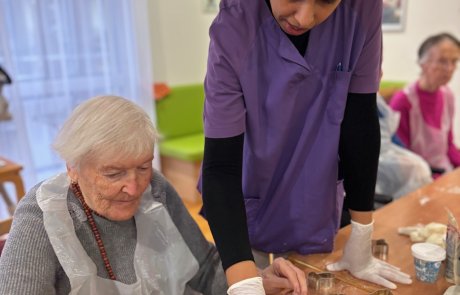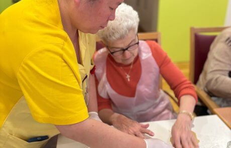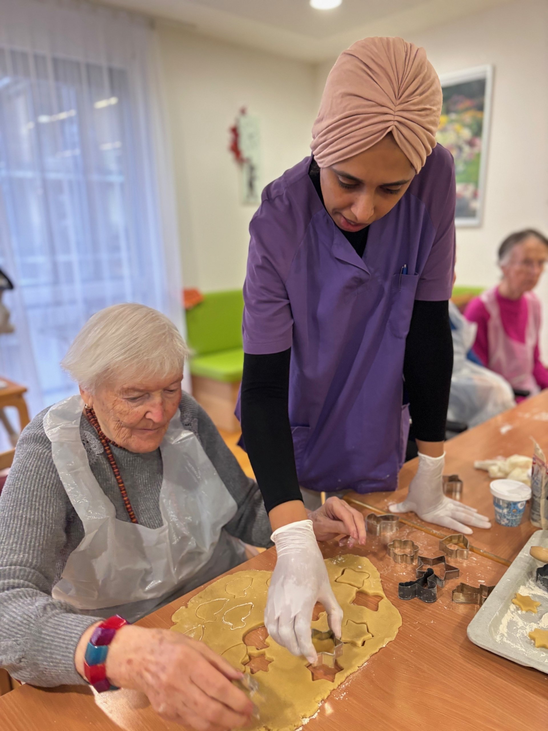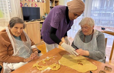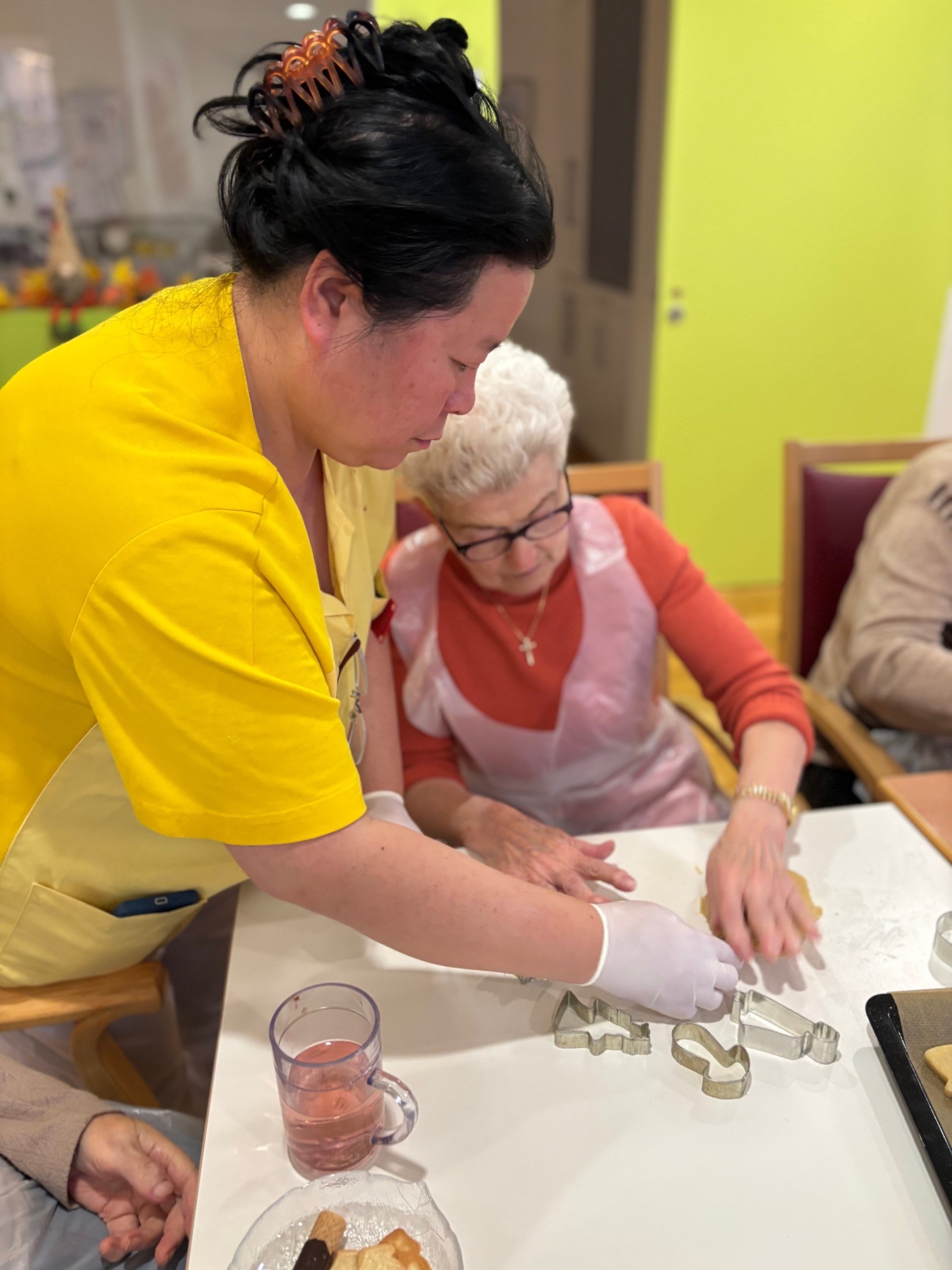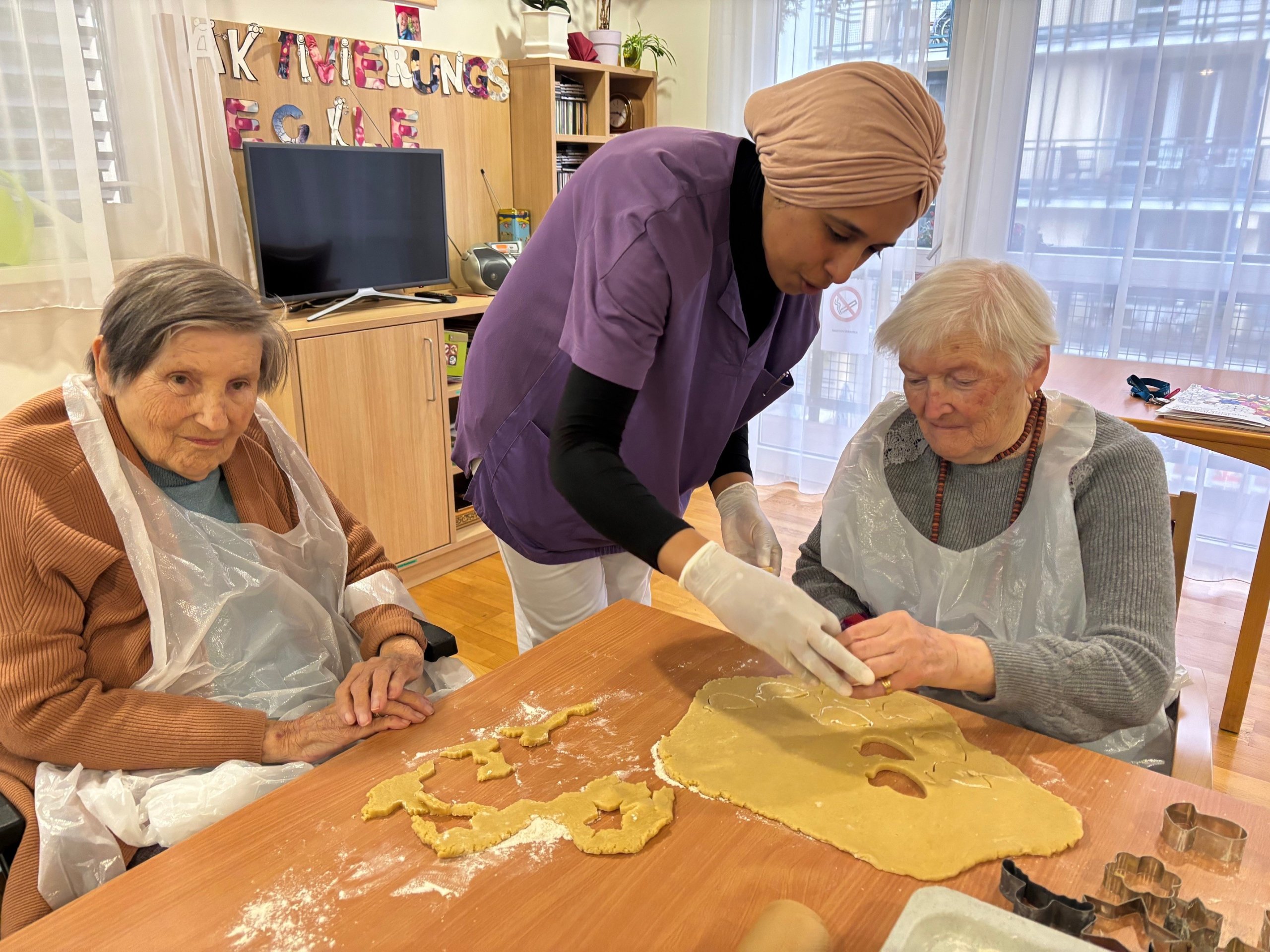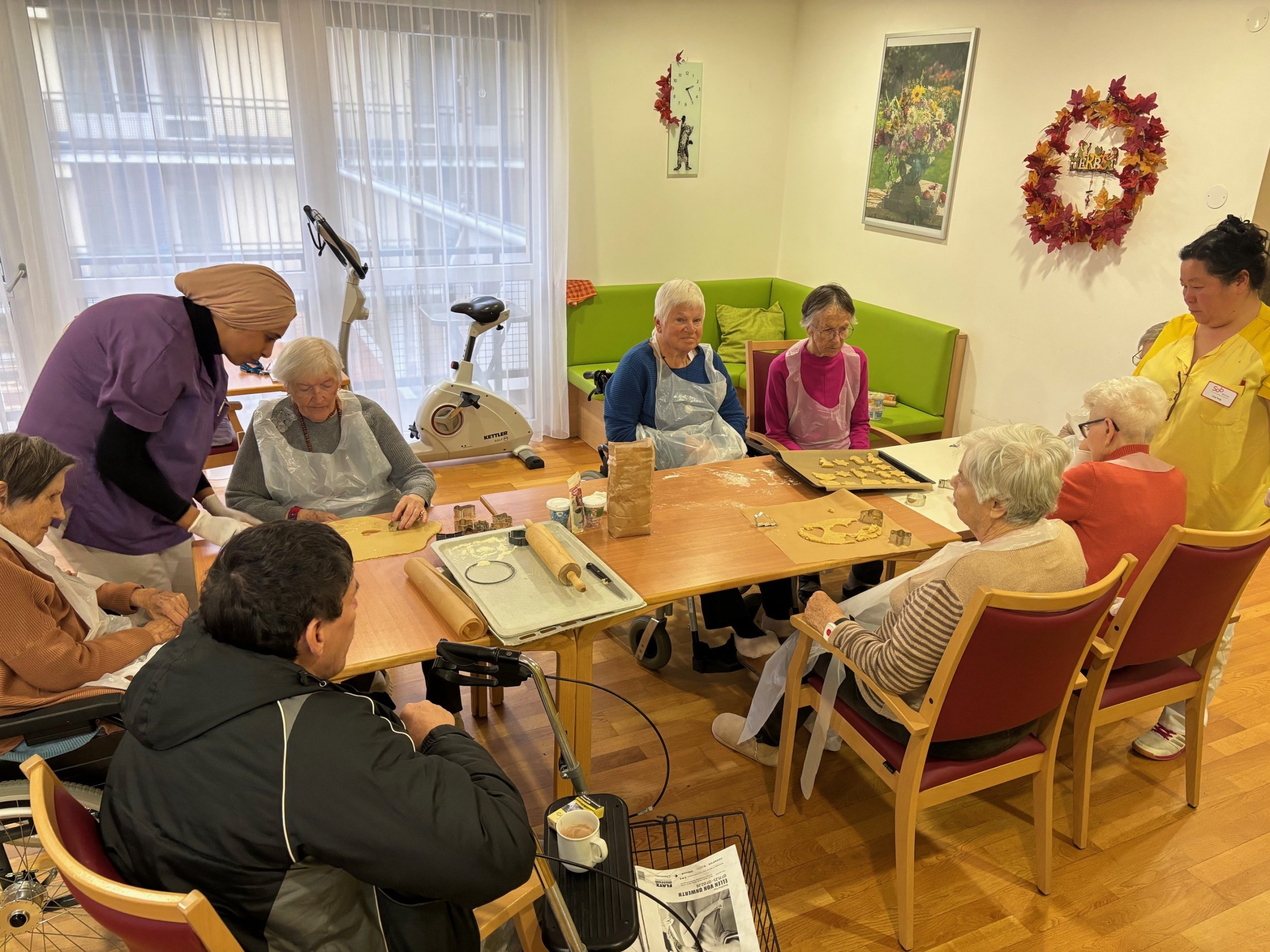 Wie jedes Jahr werden alle Wohnbereiche besucht, um mit den Bewohner:innen liebevoll Weihnachtskekse zu backen und so Vorfreude und festliche Stimmung ins ganze Haus zu bringen.