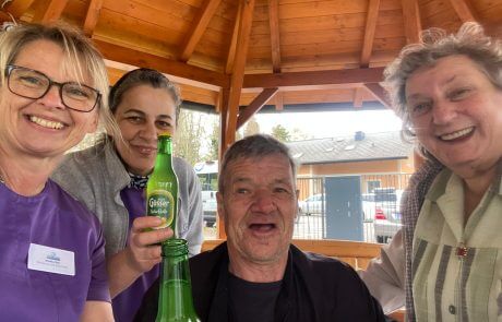 Im SeneCura Pflegezentrum Schwarzau kehrt nun der Frühling so richtig ein. Die Kolleginnen Monika und Maria aus der Reinigung, der Haustechniker Manfred mit der großartigen Hilfe der Bewohner:innen, Herr Rauch und Frau Wieser, wurde im hauseigenen Gartenbereich des Sozialzentrums Schwarzau alles bestens auf Vordermann gebracht. Wie so der Brauch am Land, waren nach vollbrachter Arbeit alle freudiger Erwartung, ihren Durst zu löschen – PROST!