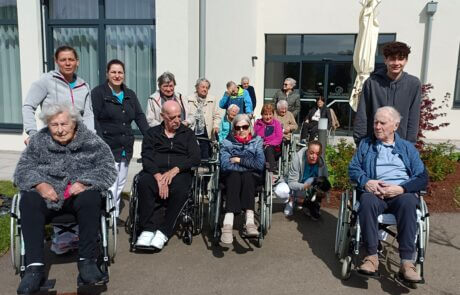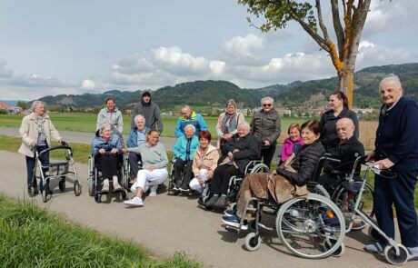 Die Bewohner:innen sowie Praktikantinnen und Praktikanten genießen den Frühlingsausflug.