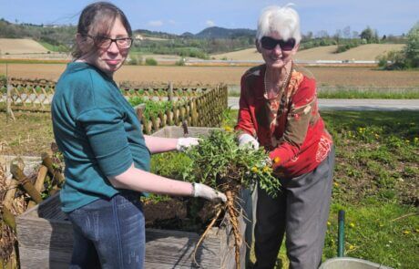 Mit gegenseiter Unterstützung macht die Gartenarbeit doppelt so viel Spaß.