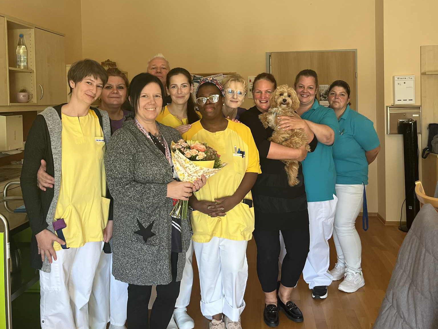Im SeneCura Sozialzentrum Rust wurde kürzlich der Geburtstag der Pflegedienstleitung, Liane Hollergschwandner, gefeiert. Das Team überraschte sie mit einem wunderschönen Blumenstrauß und einem köstlichen Kuchen. In fröhlicher Runde wurde gemeinsam auf den Geburtstag angestoßen und gefeiert.