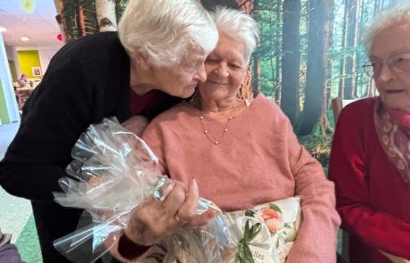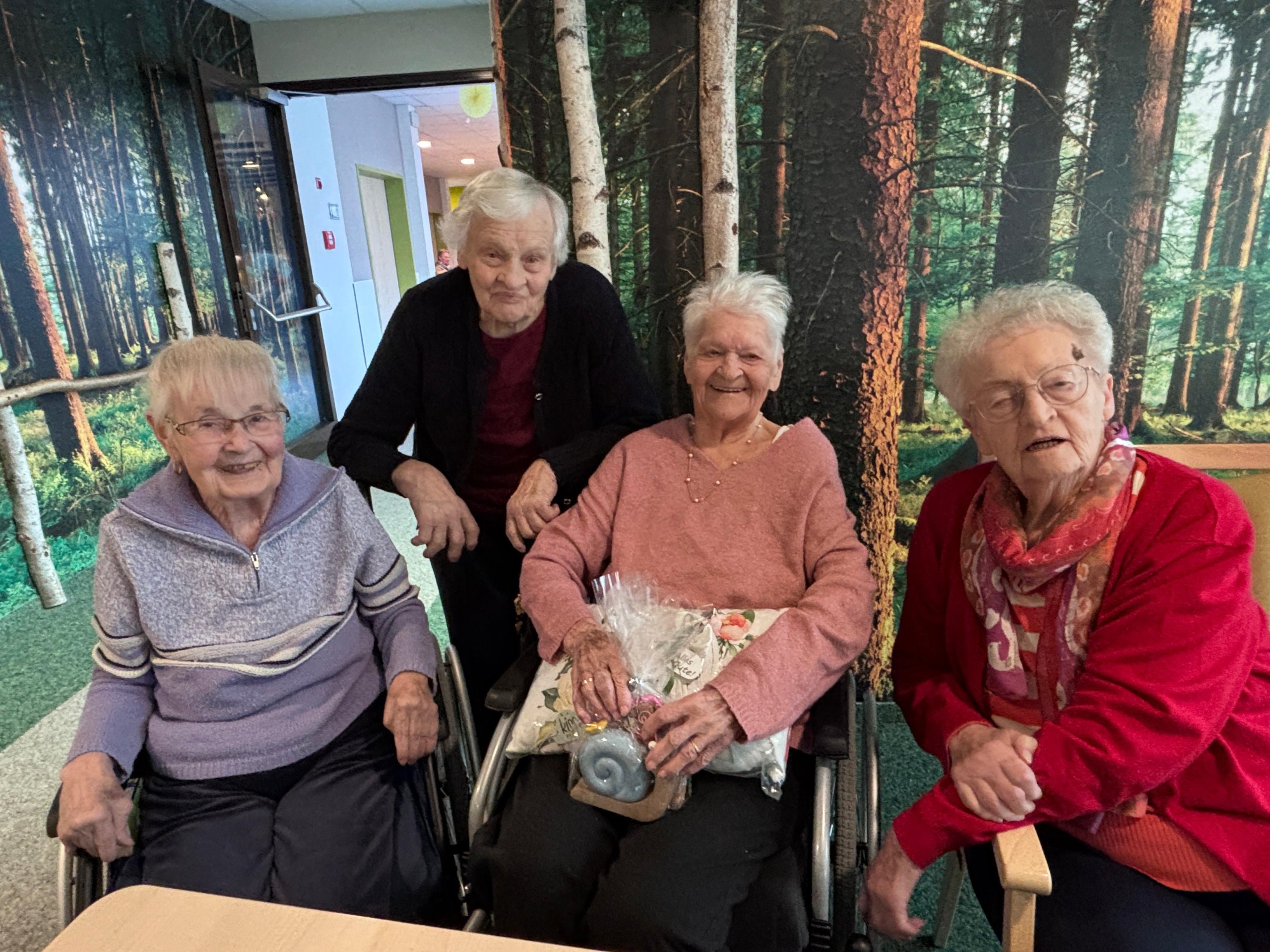 Wir haben das Glück, den 91. Geburtstag unserer lieben Bewohnerin zu feiern! Ihre Sitznachbarinnen haben ihr ein wunderschönes Geschenk überreicht – eine wunderbare Geste, die zeigt, dass im Pflegeheim echte Freundschaften fürs Leben entstehen.