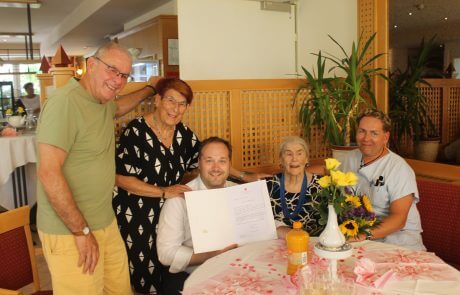 In der SeneCura Residenz Grinzing fand kürzlich eine besondere Geburtstagsfeier statt. Die Bewohnerin Frau Holledauer feierte nämlich ihren stolzen 100. Geburtstag im Haus. Auch der BV Daniel Resch freute sich, die Glückwünsche an die Jubilarin persönlich überbringen zu dürfen und es wurde mit einem Gläschen Sekt auf Frau Holledauer angestoßen.