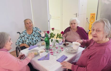 Die Bewohner:innen genossen die gemütliche Jause, köstliche Kuchen, gute Gespräche und die musikalischen Beiträge, die den Nachmittag zu etwas ganz Besonderem machten.