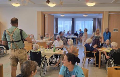 Unsere engagierte Wohnbereichsleiterin Renate Schobegger gratulierte allen Geburtstagskindern herzlich und persönlich zu ihrem Ehrentag. Im Anschluss wurde bei mitreißender Steirermusik gemeinsam geschunkelt, gelacht und die fröhliche Stimmung genossen. Für das leibliche Wohl sorgten köstliche Torten, die bei allen für strahlende Gesichter sorgten.