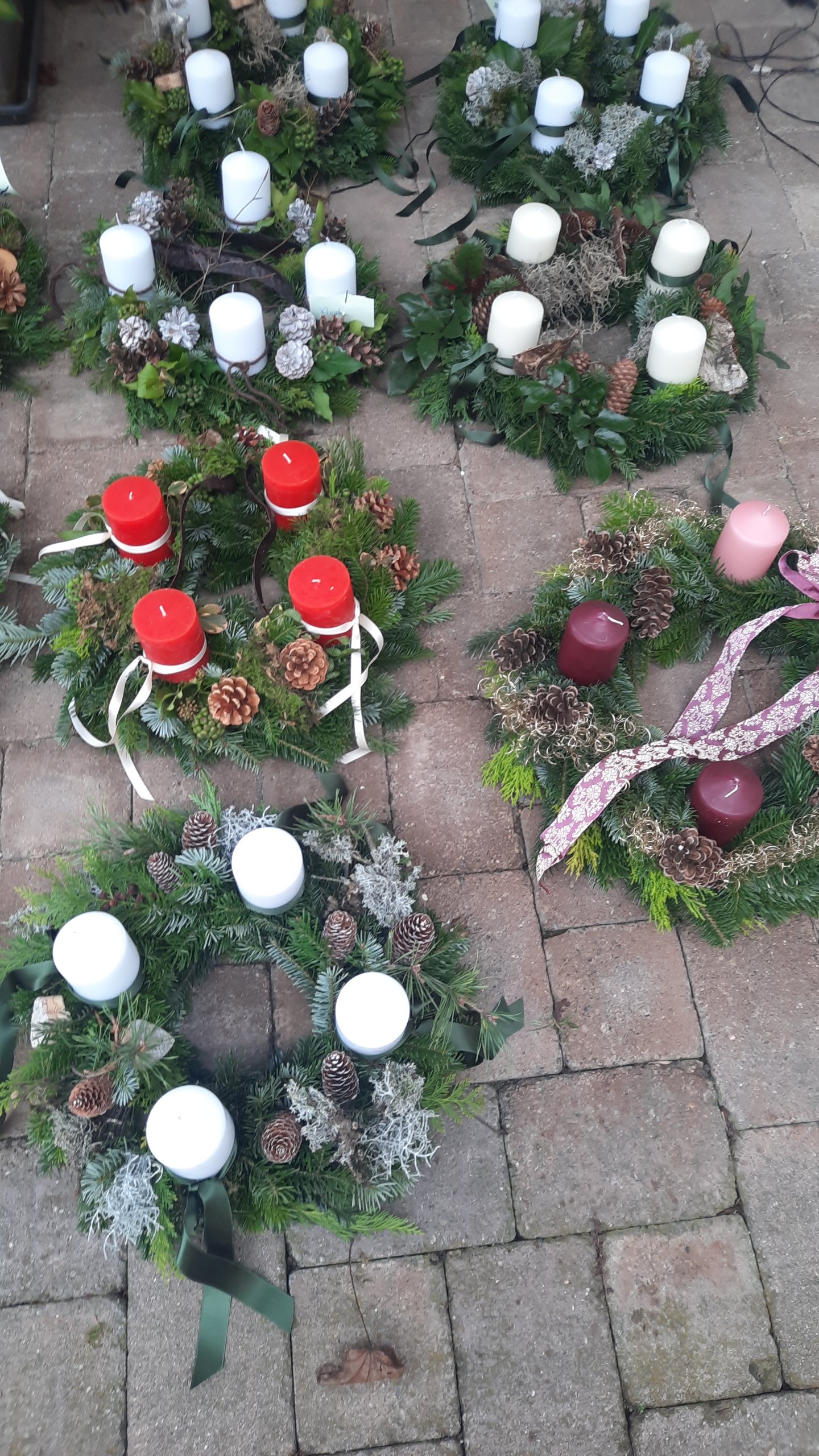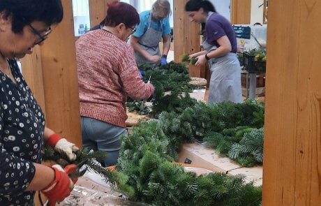 Gemeinsam wurden zahlreiche Dekokränze gebunden