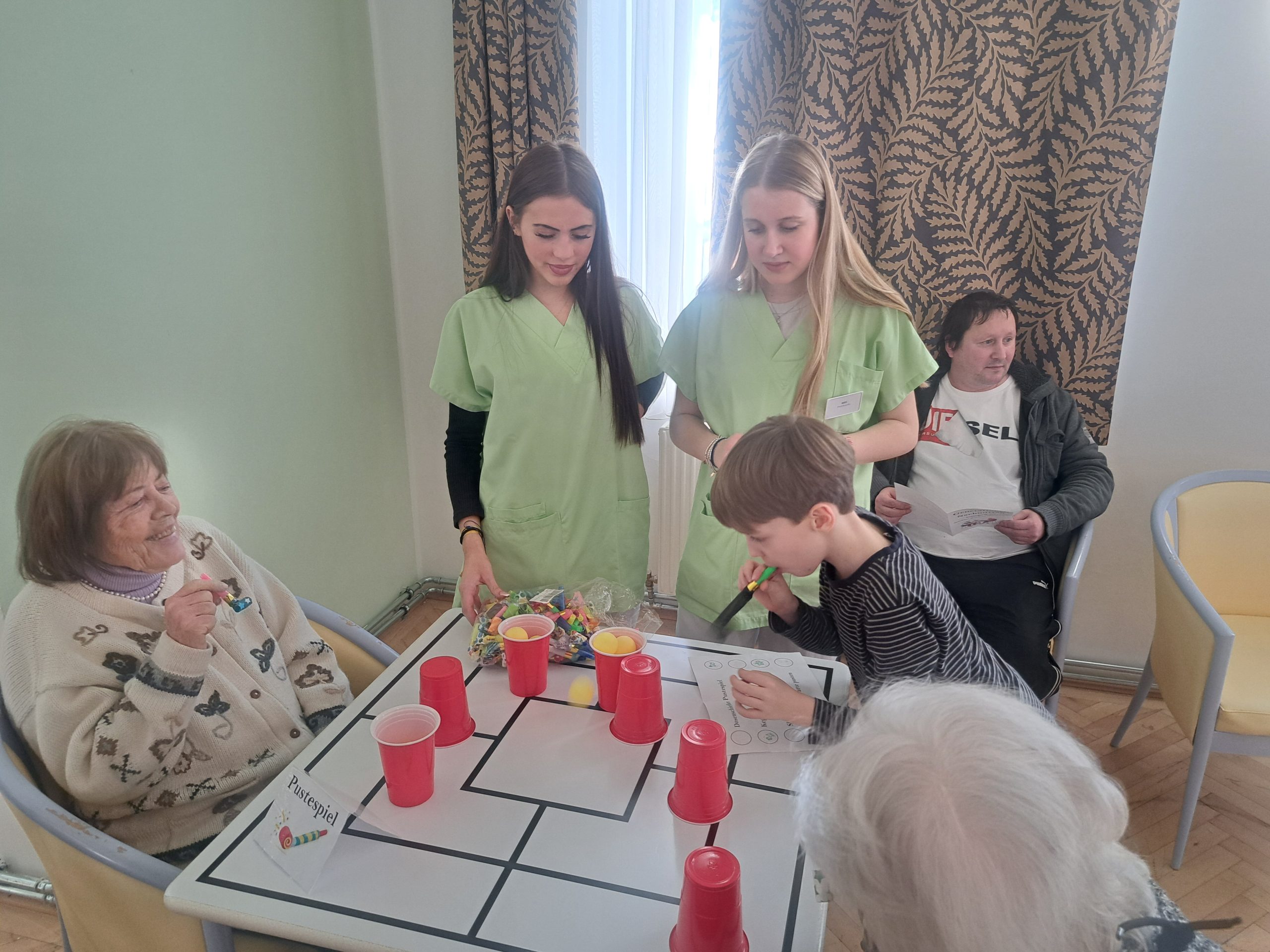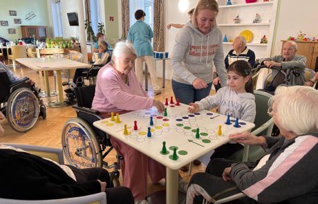 In der SeneCura Residenz Oberdöbling fand kürzlich ein fröhlicher Generationennachmittag statt. Die Schüler:innen der Volksschule Zennerstraße besuchten das Haus, um gemeinsam mit den Bewohner:innen eine gemütliche Zeit zu verbingen. Selbstverständlich wurde fleißig gespielt – egal, ob Kegeln, „Mensch ärgere dich nicht“ oder auch ein Pustespiel – alles war dabei. Es war ein riesen Spaß für Jung sowie Alt und die Bewohner:innen freuen sich bereits auf den nächsten Besuch der Volksschule!