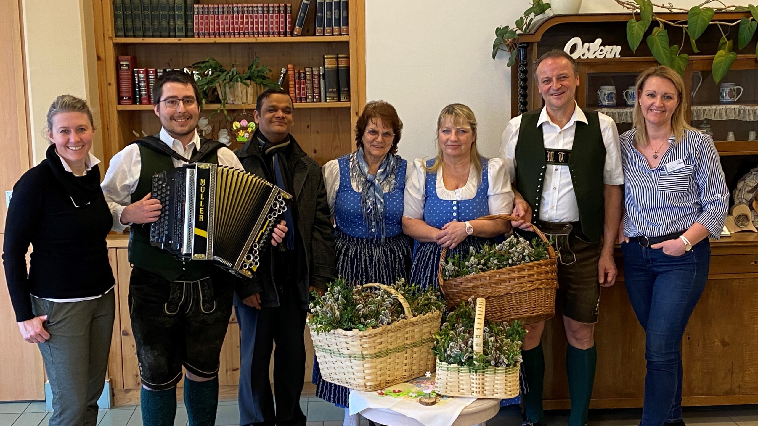 Für alle Bewohner:innen gab es ein geweihtes Plambuscherl und darüber freuten sich die Seniorinnen und Senioren wirklich sehr. Die Übergabe der Palmbuschen wurde musikalisch begleitet, was für eine tolle Stimmung sorgte. Ein besonderer Dank gilt Herrn Tockner Michael und Herrn Manuel Peinhopf für diese jährliche schöne Tradition im SeneCura Sozialzentrum Knittelfeld.