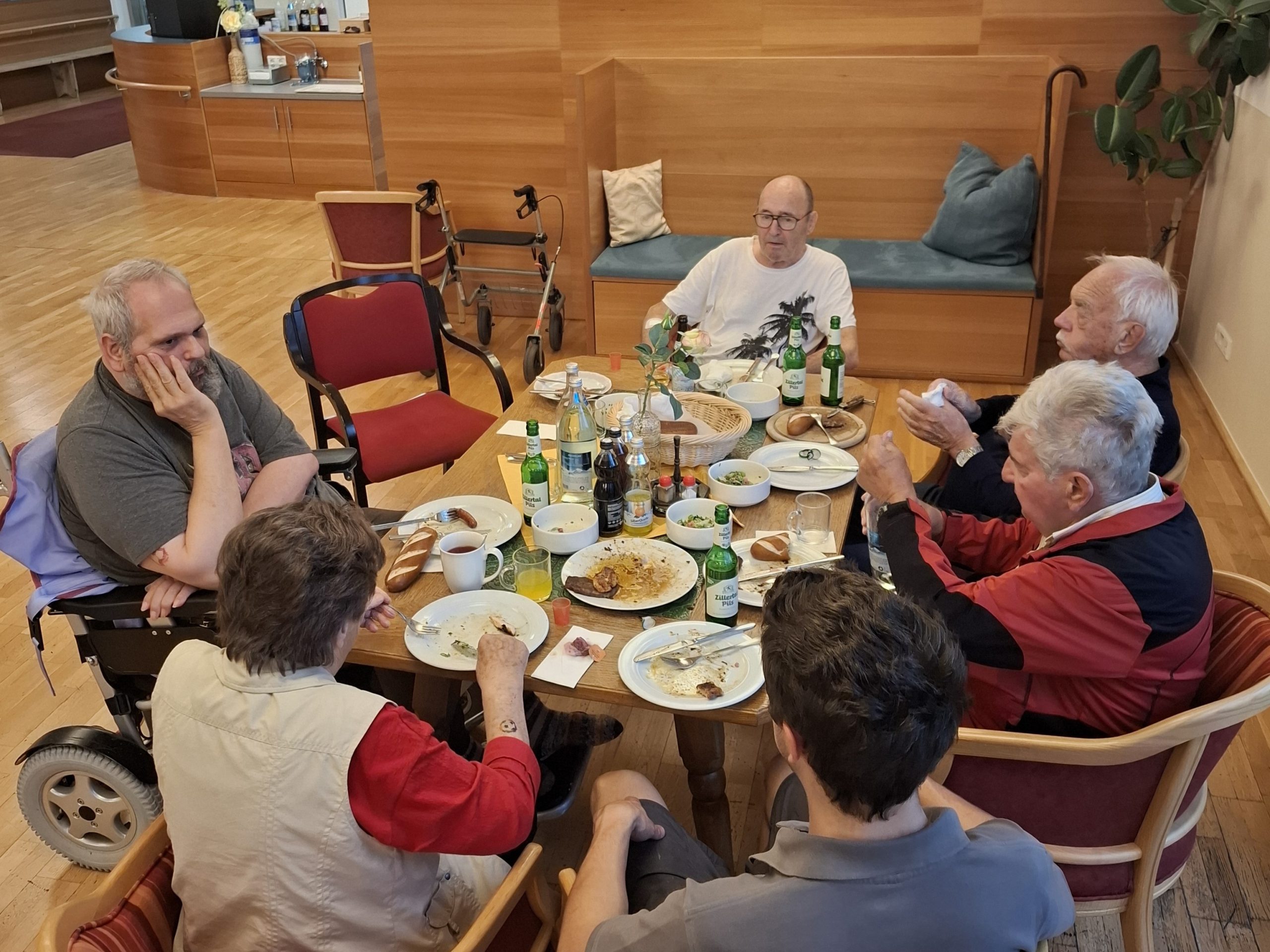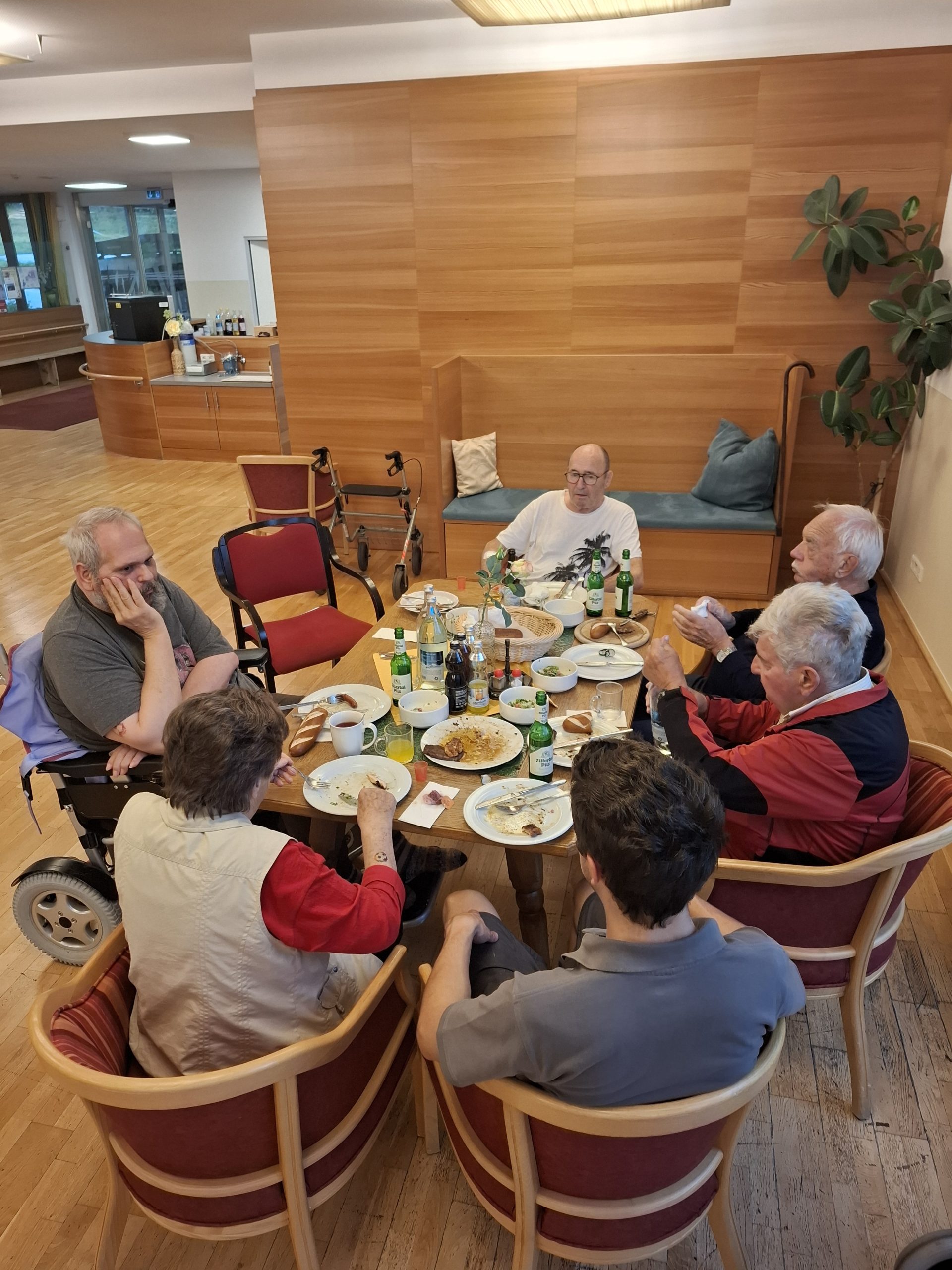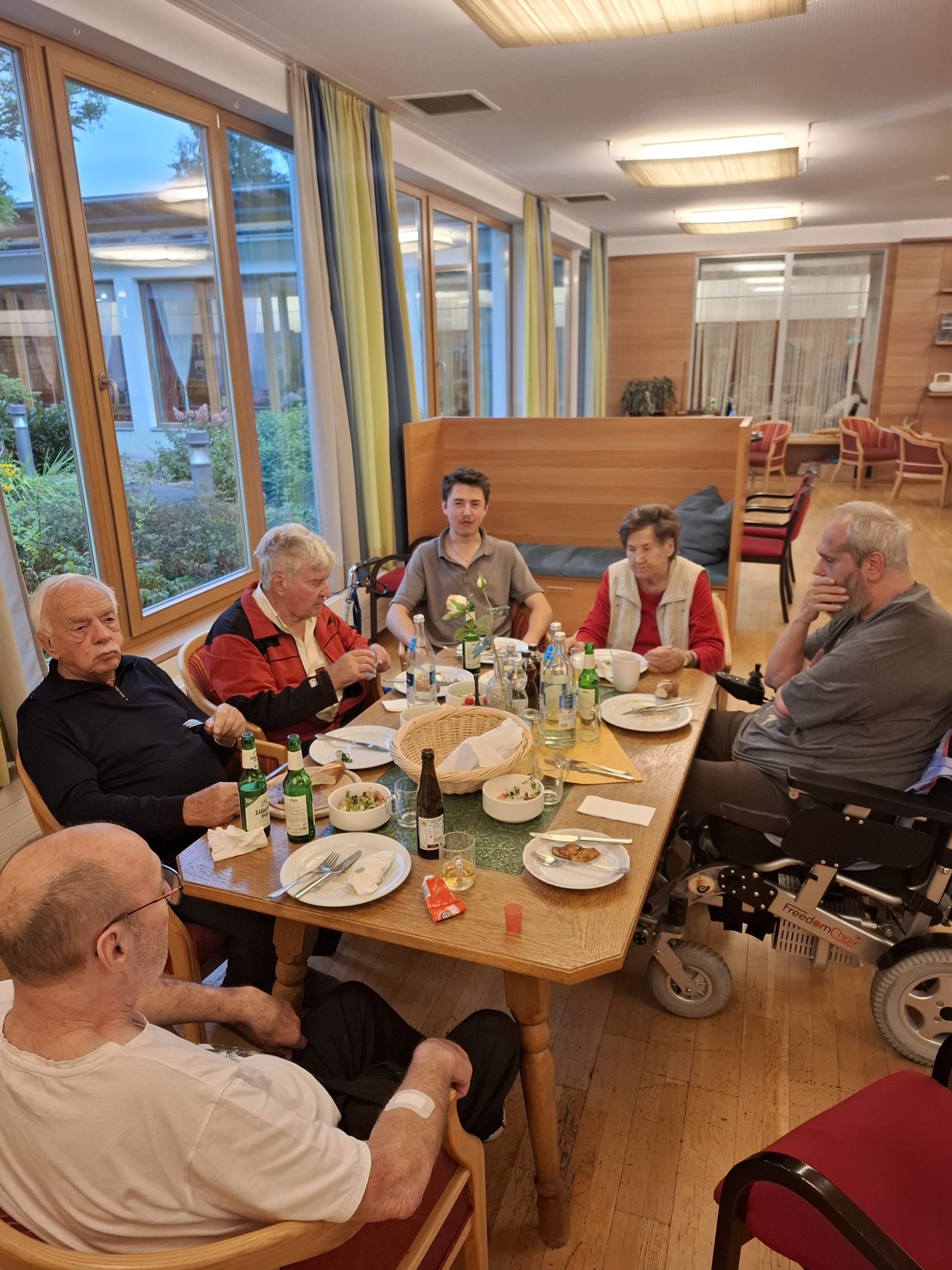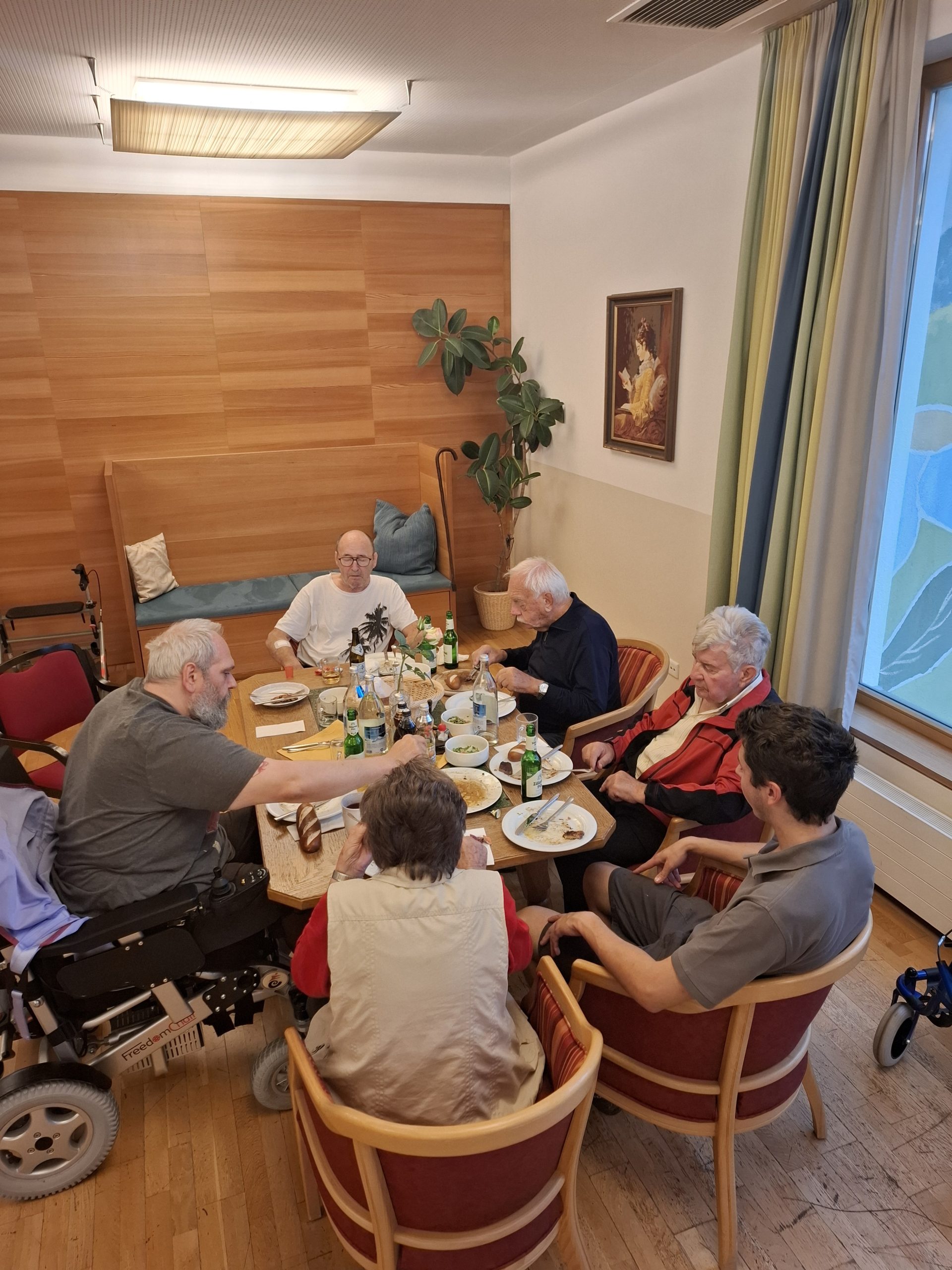 Mit Unterstützung von Zivildiener Julian und Pflegeassistent Robert wurde dieser Wunsch wahr – und die kleine Grillerei im Garten entwickelte sich zu einem wunderbaren Abend voller Freude, guter Gespräche und gemeinsamer Momente. Natürlich ließen es sich auch Julian und Robert nicht nehmen, mitzuschlemmen.