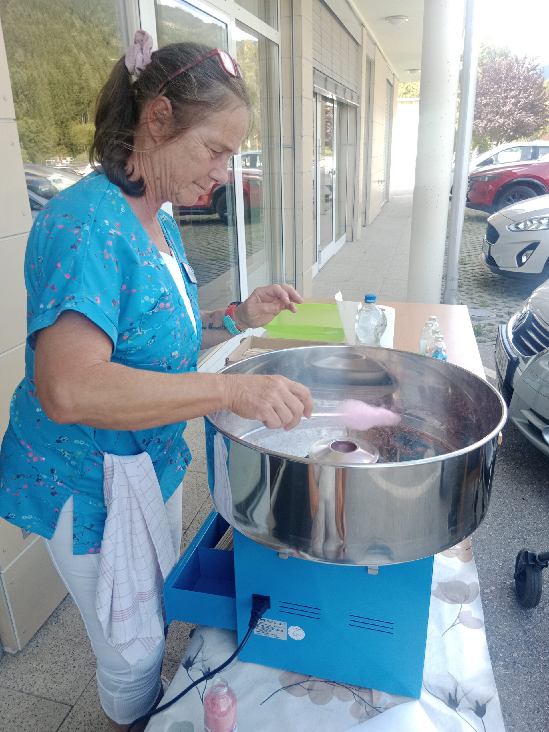 Seniorenbetreuerin Lydia beim Zuckerspinnen