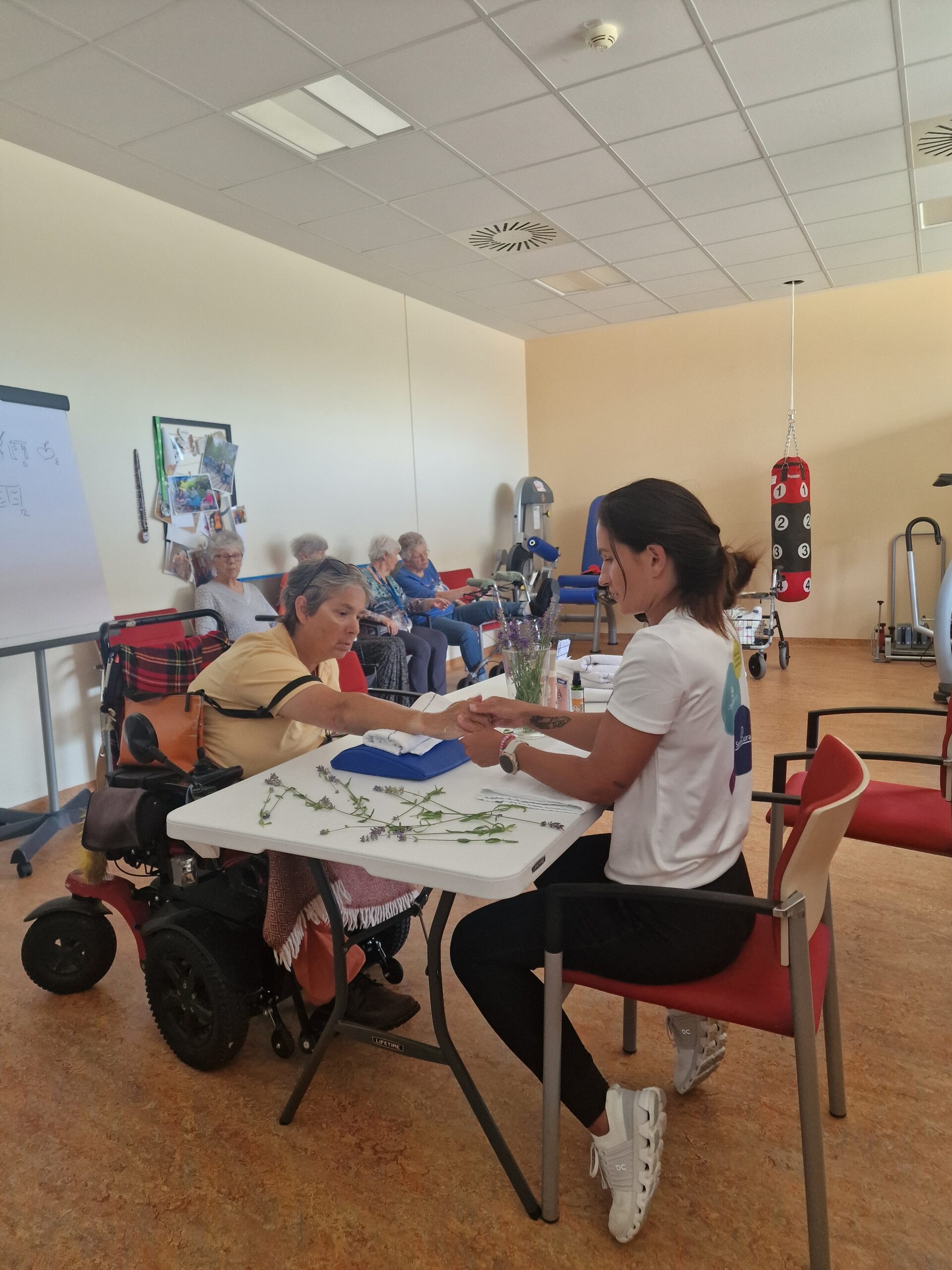 Kürzlich wurden die Bewohner:innen des SeneCura Sozialzentrums Vasoldsberg besonders verwöhnt: Fitnesstrainerin Andreja Zrnič motivierte die Senior:innen diesmal nicht zum Sport, sondern bot wohltuende Handmassagen an. Dabei verwendete sie Lavendel-Massageöle, die im ganzen Haus einen beruhigenden Duft verströmten. Die Bewohner:innen waren begeistert und freuen sich auf den nächsten Spa-Tag.