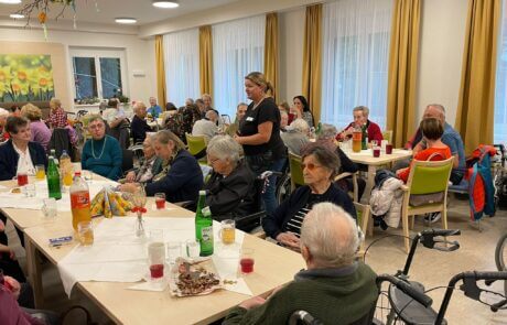 Im SeneCura Sozialzentrum Schwarzau wurde letzten ein fulminantes Herbstfest mit den Bewohner:innen zelebriert. Aufgrund des schlechten Wetters musste die Feier kurzerhand ins Haus verlegt werden. Dank der liebevollen Gestaltung mit gemütlicher Atmosphäre tat das Wetter der Stimmung keinen Abbruch. Die Bewohner:innen genossen ein abwechslungsreiches Herbstprogramm mit Musik, herbstlichen Köstlichkeiten und schönen Gesprächen. Trotz des Regens war das Herbstfest eine gelungene Feier im Haus und bereitete große Freude.