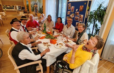 Gemeinsam mit den Bewohner:innen des SeneCura Sozialzentrums Sitzenberg-Reidling, drei Urlaubsgästen aus Kärnten und ihren zwei lieben Begleiterinnen haben wir ein fröhliches Herbstfest gefeiert. Für beste Stimmung sorgten die Schlosskogler mit ihrer Musik – da wurde getanzt, gelacht und sogar eine Polonaise gemacht! Unsere Mitarbeiter:innen waren im Dirndl unterwegs und haben mit ihrer Herzlichkeit und guter Laune den Festtag besonders gemacht. Natürlich durfte auch die zünftige Verpflegung nicht fehlen: Weißwurst und Brezen rundeten das Fest perfekt ab. Ein herzliches Dankeschön an alle, die mitgefeiert und diesen Tag so unvergesslich gemacht haben.