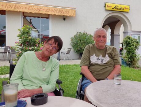„Nach ewigen Zeiten den Heimatort und das Stammcafé in Trofaiach besuchen“ – das war der Herzenswunsch von der Bewohnerin des SeneCura Sozialzentrums Kammern, Schwab Susanne. So wurde der Ausflug von Seniorenanimation, Köhler Karin, organisiert und sehr gerne erfüllt. Auch zwei Bewohner:innen aus dem Freundeskreis des Hauses schlossen sich gerne an. Darunter natürlich der neue Lebensgefährte von Frau Schwab, den sie im Haus kennen und lieben gelernt hat. Groß war das Wiedersehen, als sie beim Café Arcardia ankamen, denn die ganze Verwandtschaft wartete schon! Sehr emotionale Stunden folgten und die Zeit verging wie immer viel zu schnell. Mit einem weinenden Auge, aber glücklich, machten sich die Besucher:innen wieder auf den Weg ins Sozialzentrum. Es war wunderschön, der Bewohnerin so viel Freude bereiten zu können!