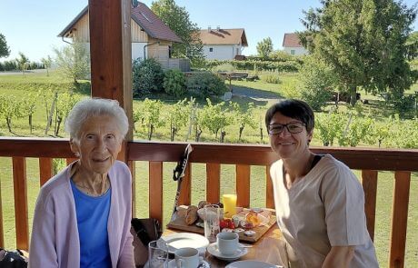 Die Fahrt durch das sonnige Südburgenland führte mitten hinein in die idyllischen Weinberge rund um Winten – eine Region, die mit ihrer sanften Hügellandschaft und dem weiten Blick über die Reben beeindruckte. Für Jolanta Paul war es ein besonderes Erlebnis, diese Umgebung zu entdecken. „Es ist schon lange her, dass ich in dieser Gegend war – umso schöner war es, einmal wieder hinauszukommen. Das hat mir richtig gutgetan“, erzählt sie gerührt. Nach einer gemütlichen Rundfahrt durch das Weingebiet ging es zum Buschenschank Schrammel, wo die Bewohnerin und Mitarbeiterin Karina Stubits einen schattigen Platz mit herrlichem Panoramablick fanden. Bei einer traditionellen burgenländischen Jause mit regionalen Schmankerln, hausgemachten Säften und einem guten Gespräch wurde der Ausflug zu einem kleinen Fest für alle Sinne. Die entspannte Atmosphäre, das schöne Wetter und die liebevolle Begleitung machten den Ausflug zu einem ganz besonderen Tag.
